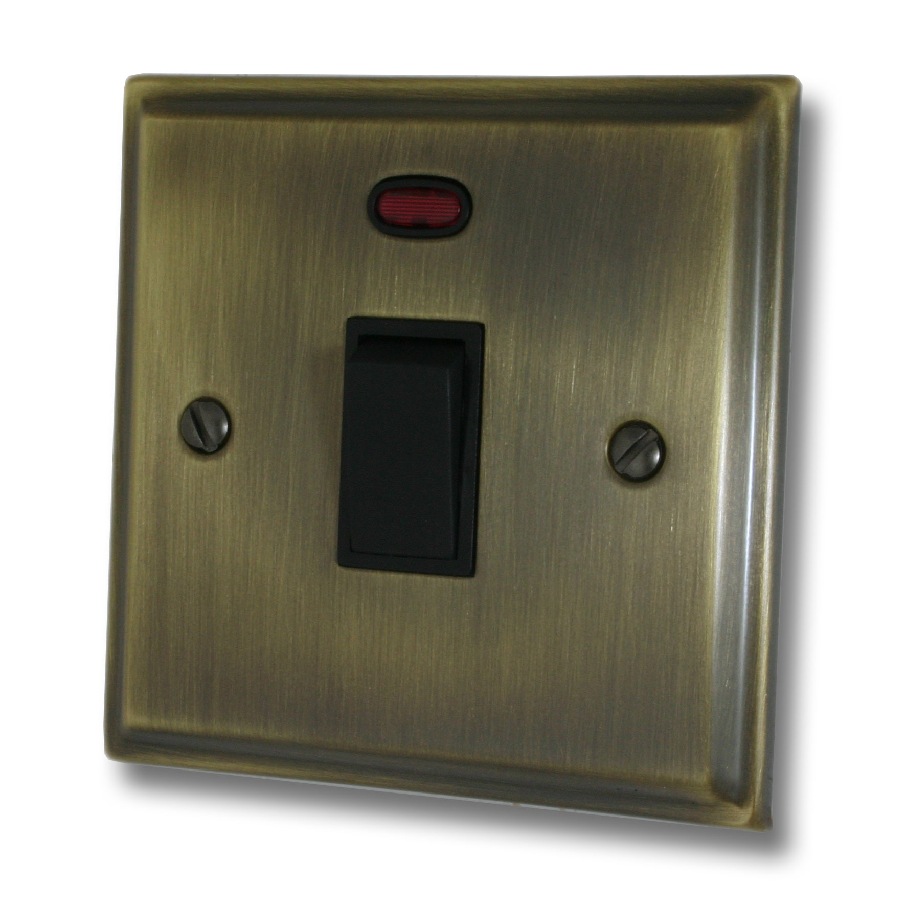 Deco Antique Brass 20A DP Switch with Neon (Black Switch) - G+H DAB26B