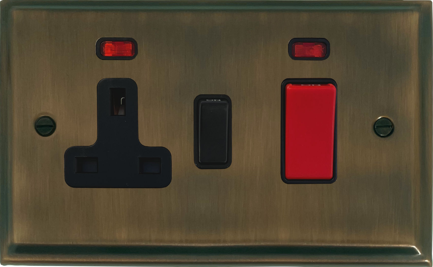 Deco Antique Brass Cooker Switch with Socket (Black Switch) - G+H DAB29B