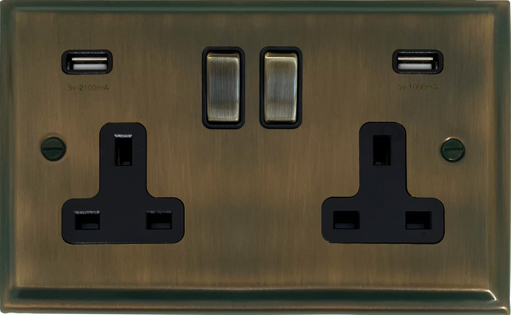 Deco Antique Brass Double Socket with USB (Matching Switches) - G+H DAB3910