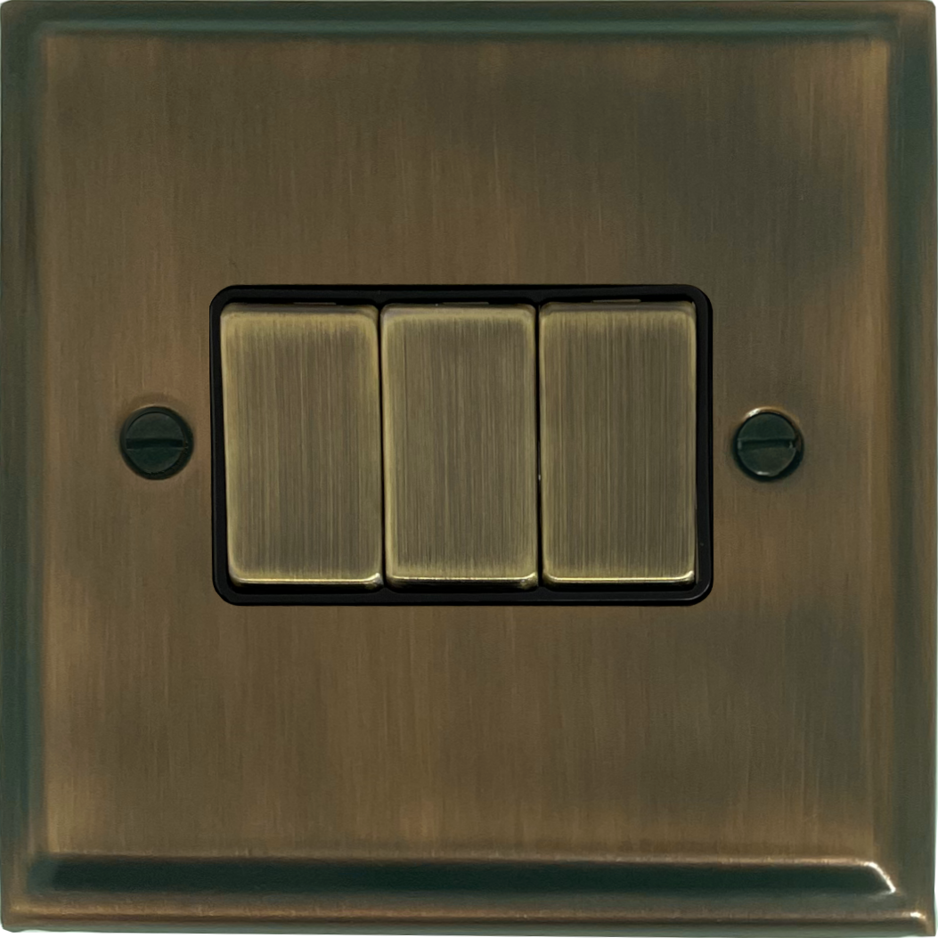 Deco Antique Brass Light Switch (3 Gang/Brass Switches) - G+H DAB303