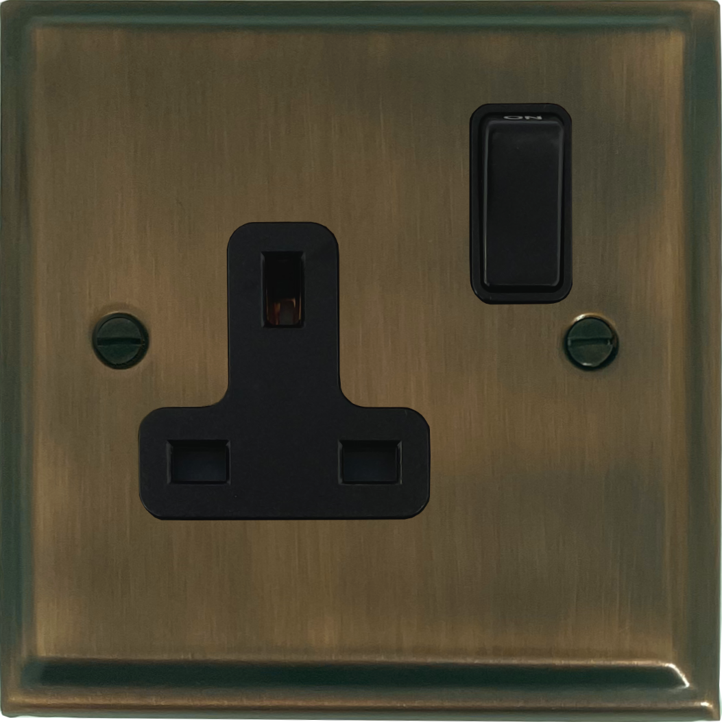 Deco Antique Brass Single Socket (Black Switch) - G+H DAB9B