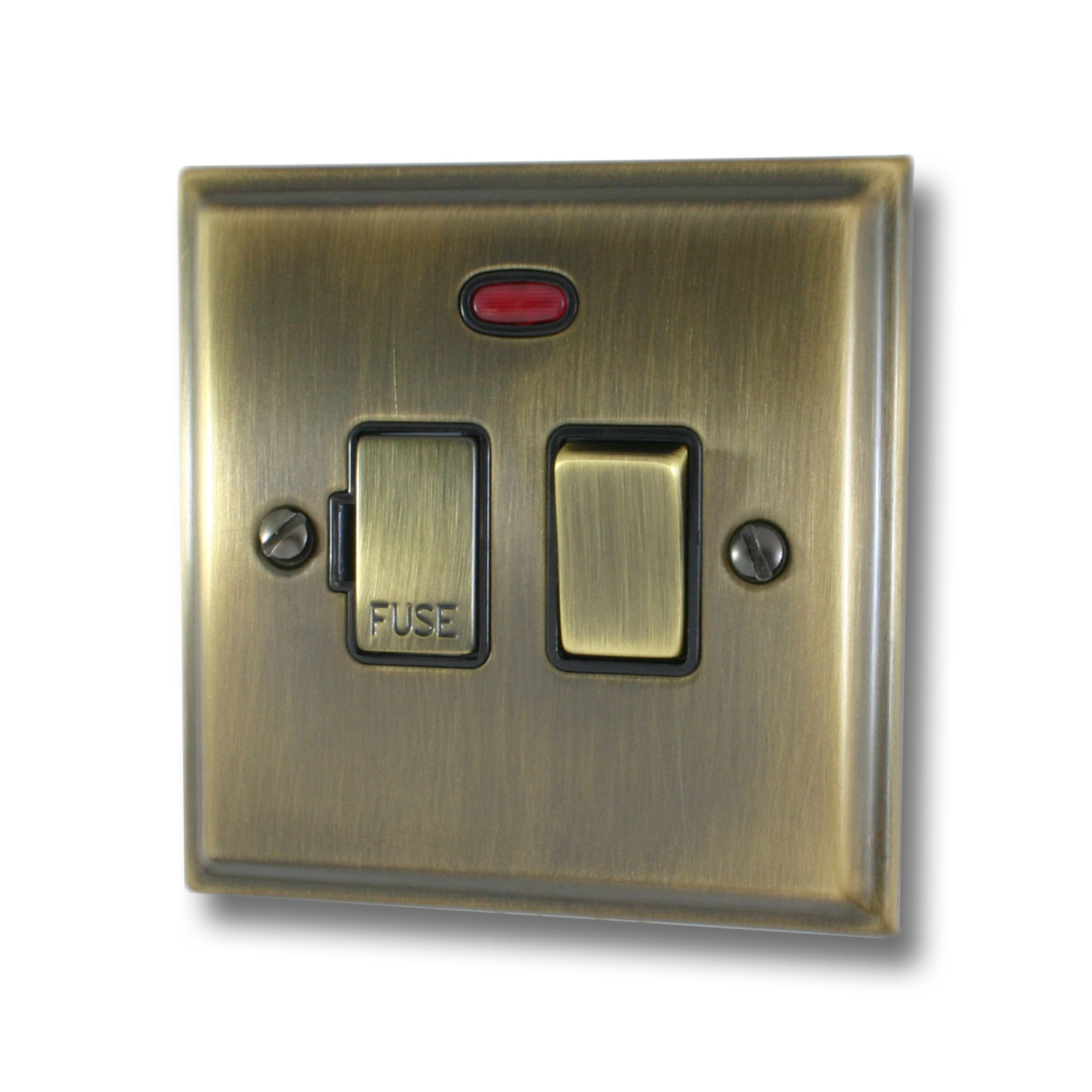 Deco Antique Brass Switched Fused Spur with Neon (Brass Switch) - G+H DAB327