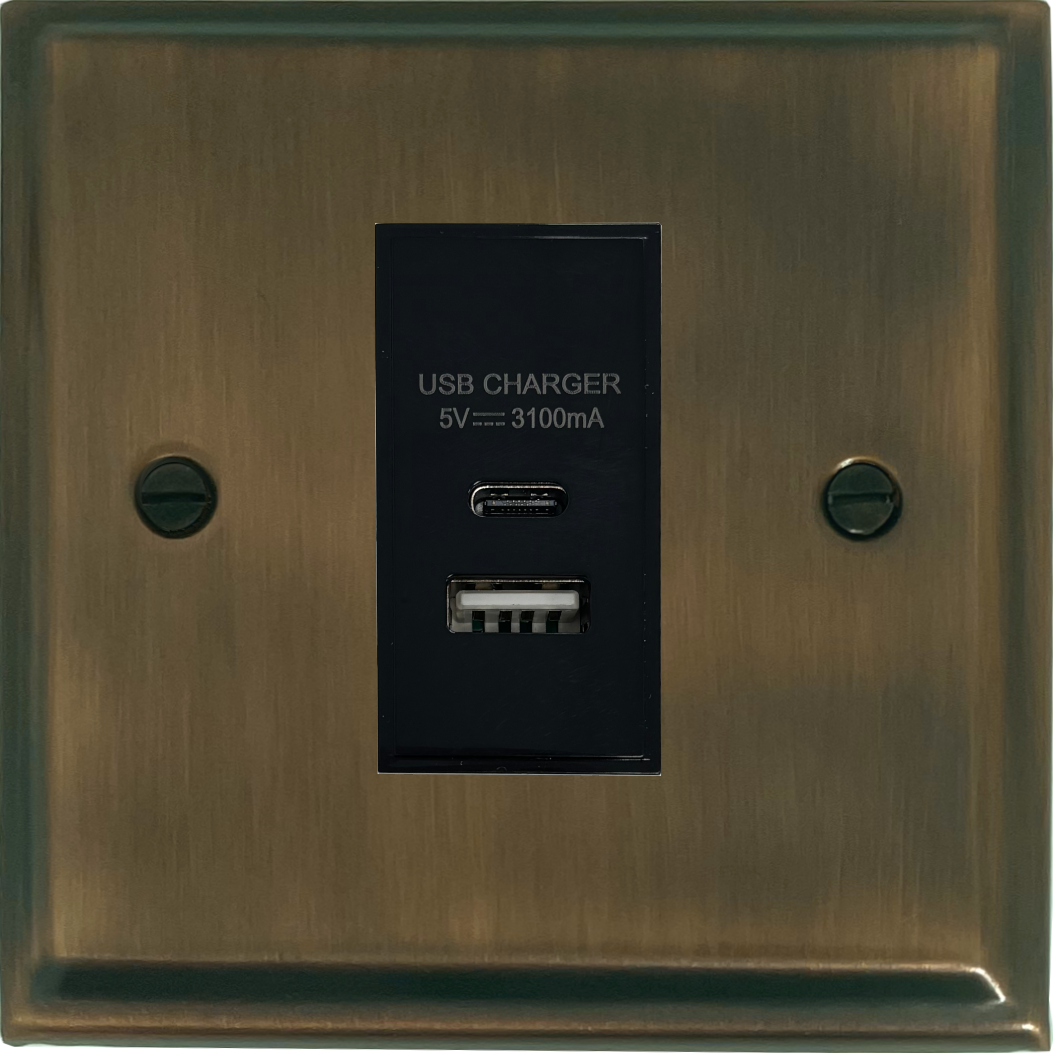 Deco Antique Brass USB Charger (USB-A and USB-C) (1 Gang) - G+H DAB41B