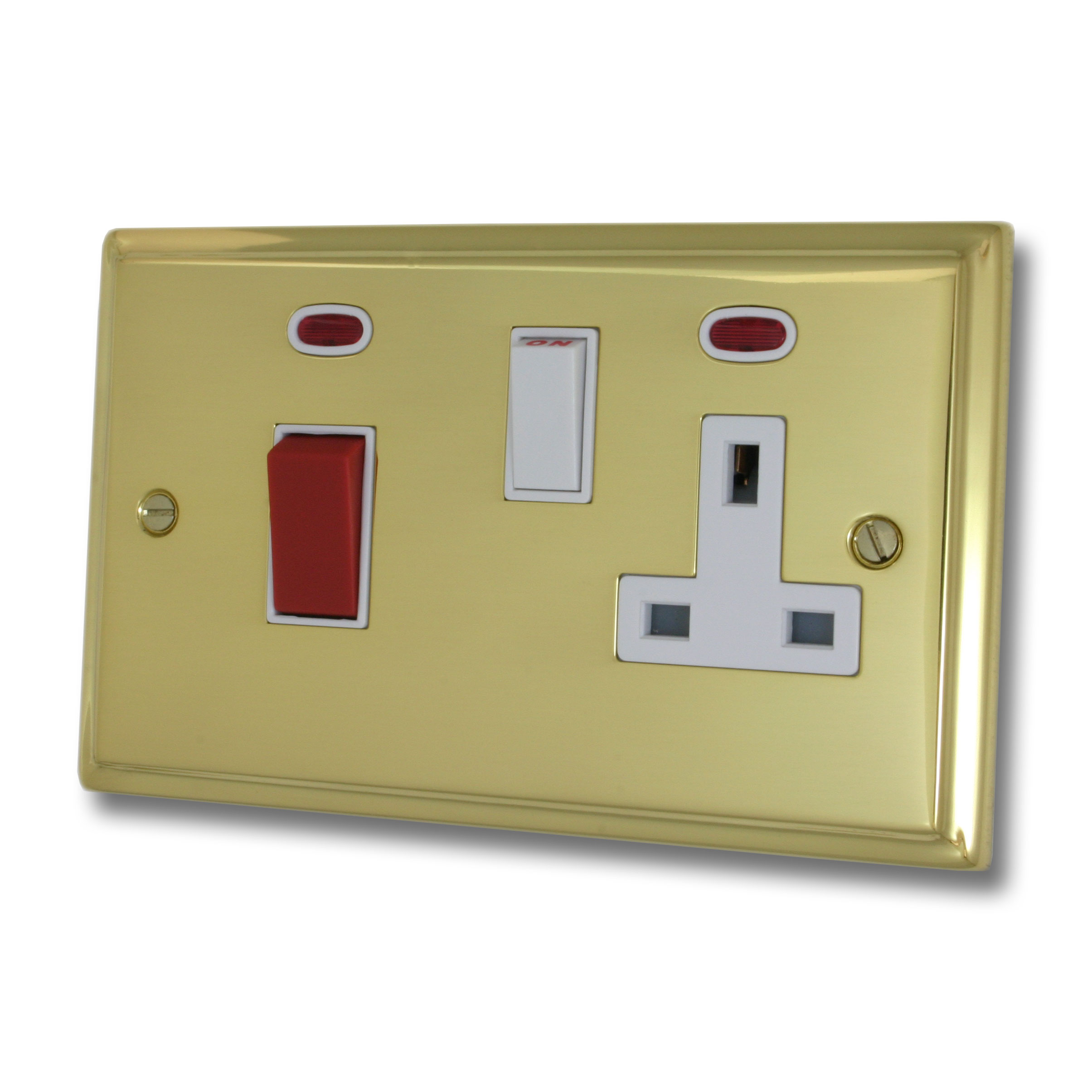 Deco Polished Brass Cooker Switch with Socket (White Switch) - G+H DB29W
