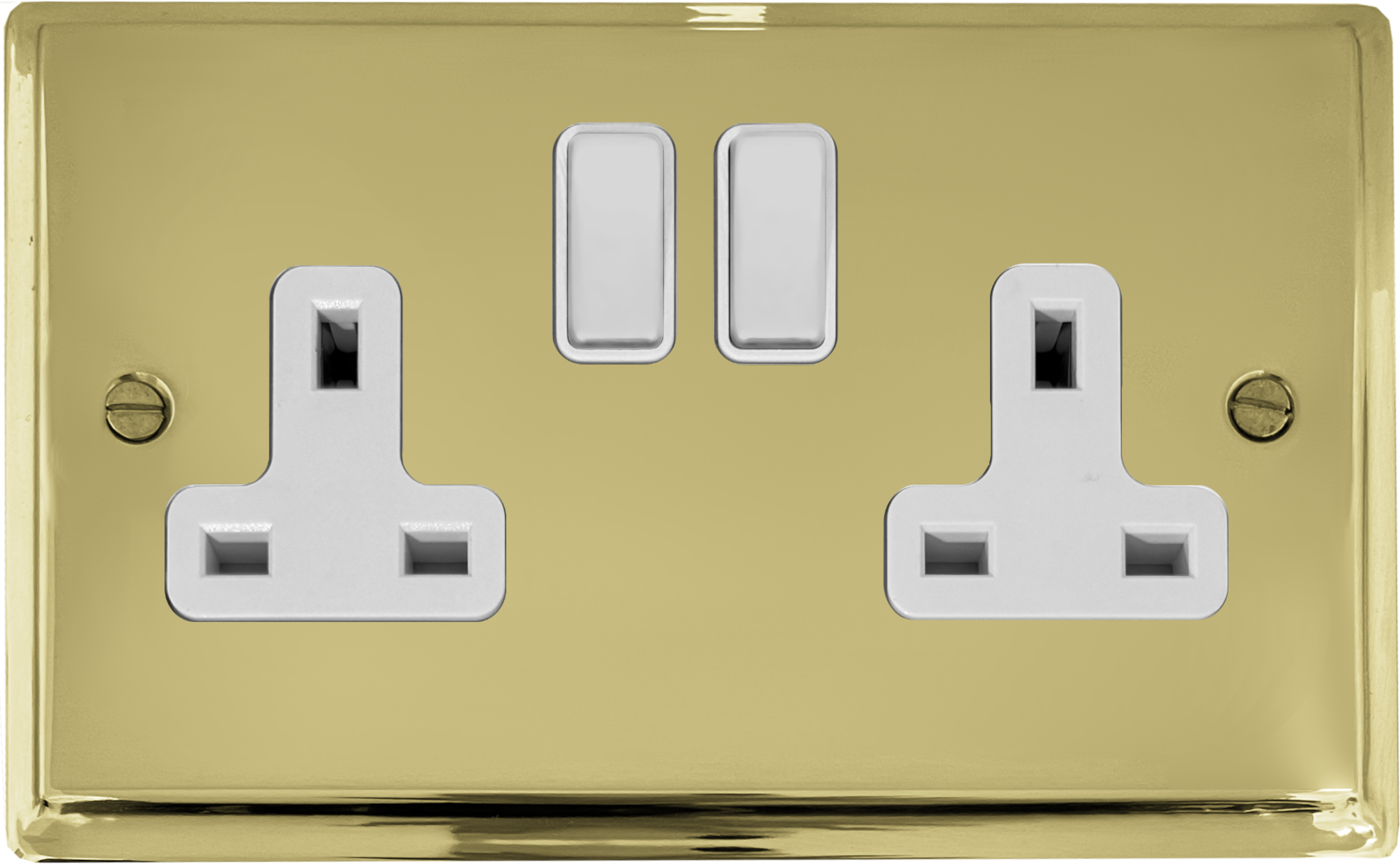 Deco Polished Brass Double Socket (White Switches) - G+H DB10W