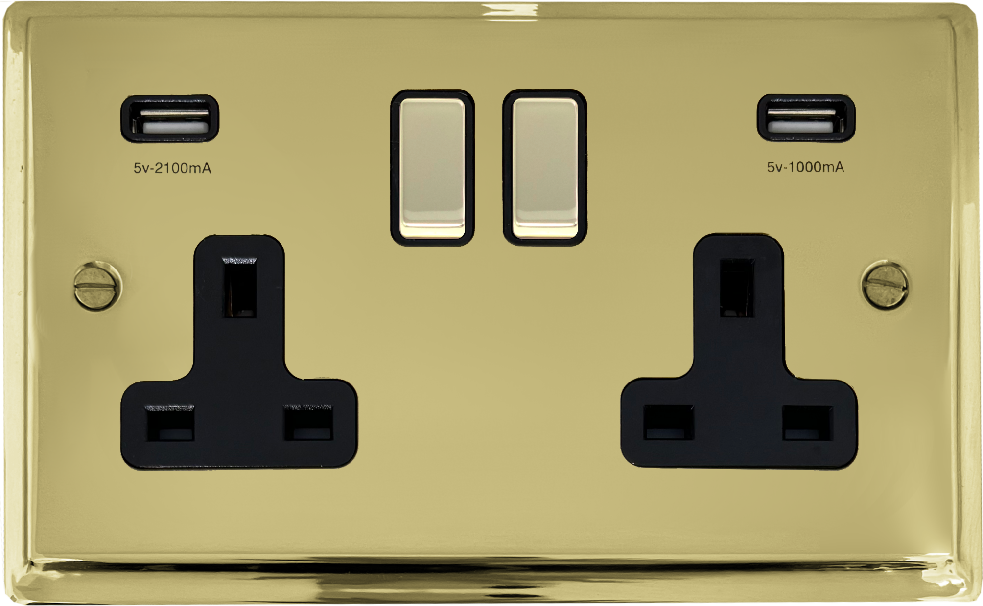 Deco Polished Brass Double Socket with USB (Brass Switches) - G+H DB3910