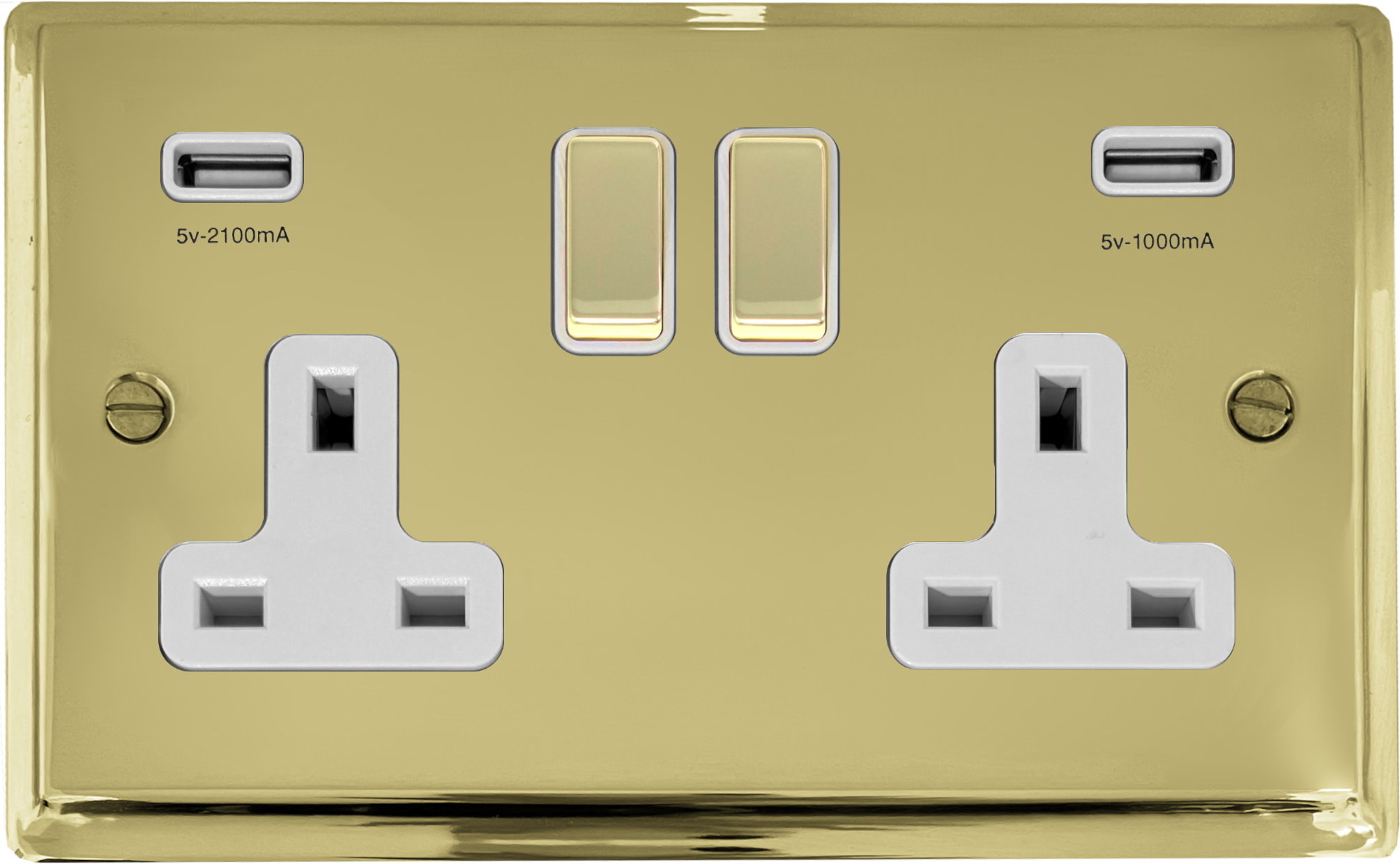 Deco Polished Brass Double Socket with USB (Brass Switches/White Inserts) - G+H DB2910