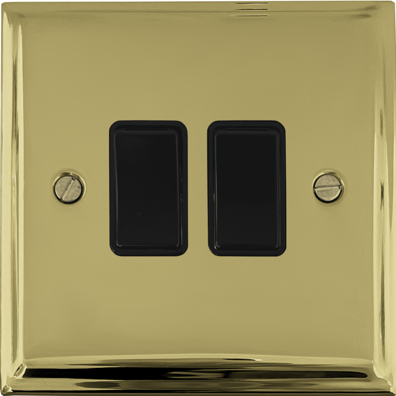 Deco Polished Brass Light Switch (2 Gang/Black Switches) - G+H DB2B