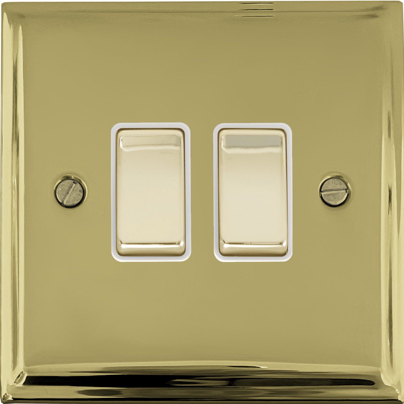 Deco Polished Brass Light Switch (2 Gang/Brass Switches/White Inserts) - G+H DB202