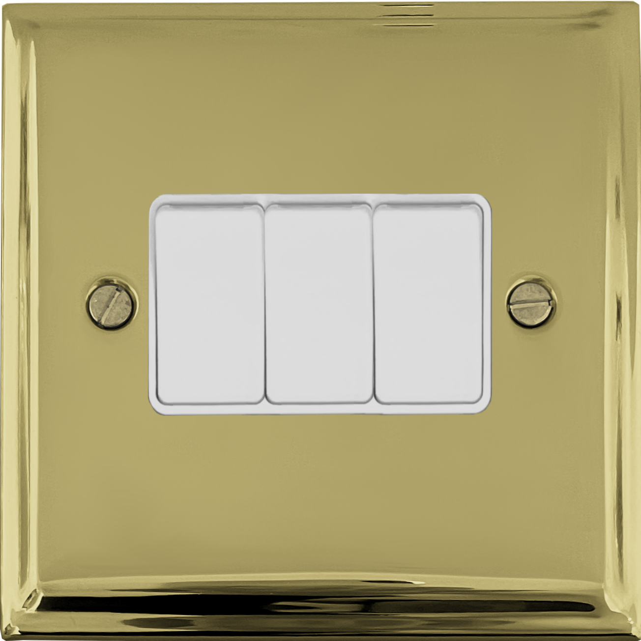 Deco Polished Brass Light Switch (3 Gang/White Switches) - G+H DB3W