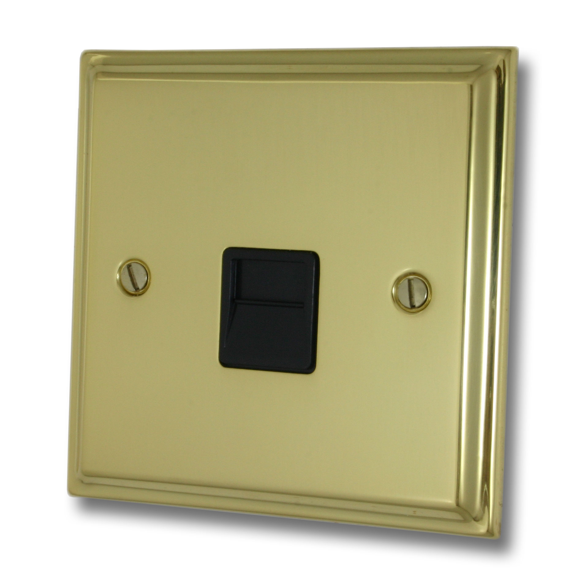 Deco Polished Brass Master Telephone Socket (Black Insert) - G+H DB33B