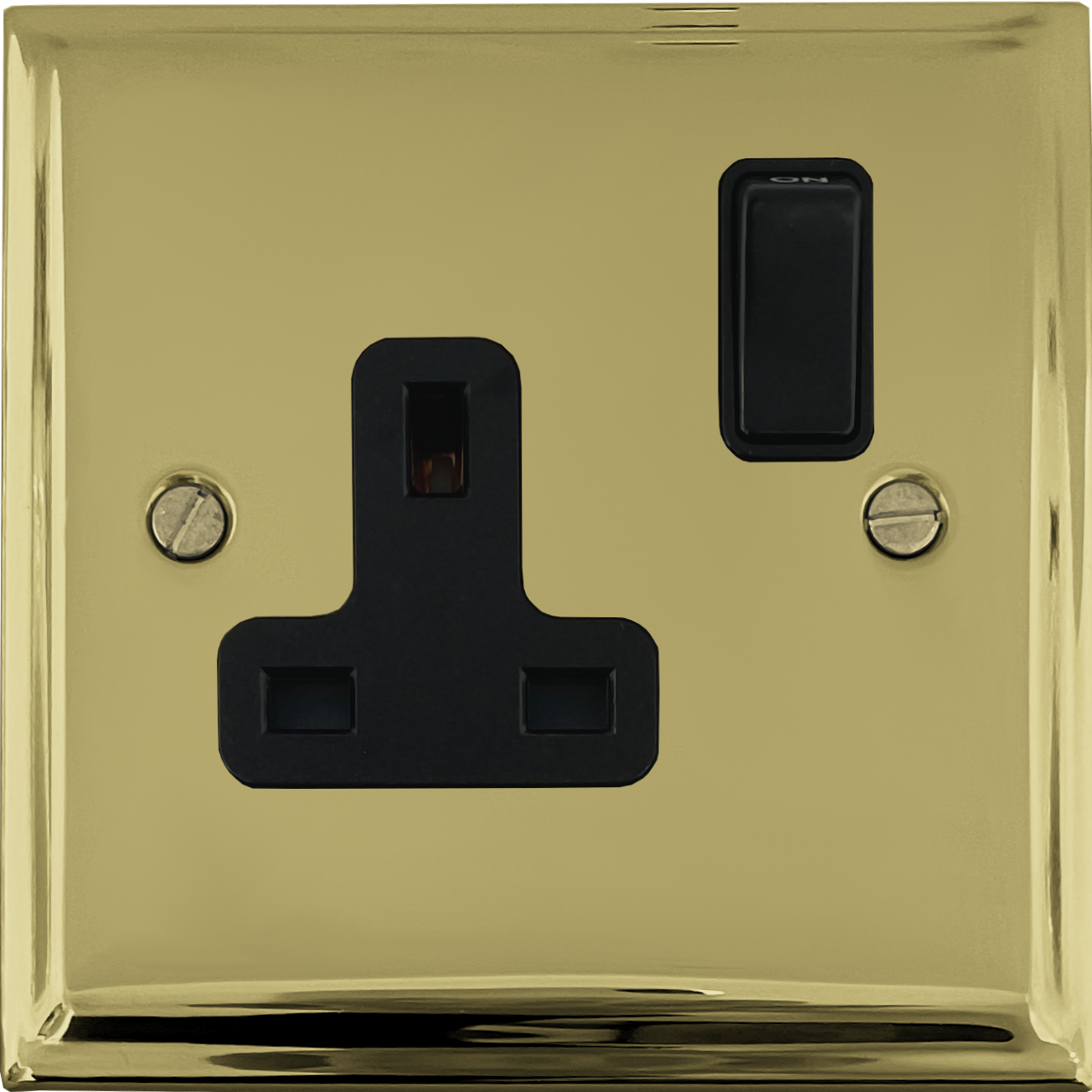 Deco Polished Brass Single Socket (Black Switch) - G+H DB9B