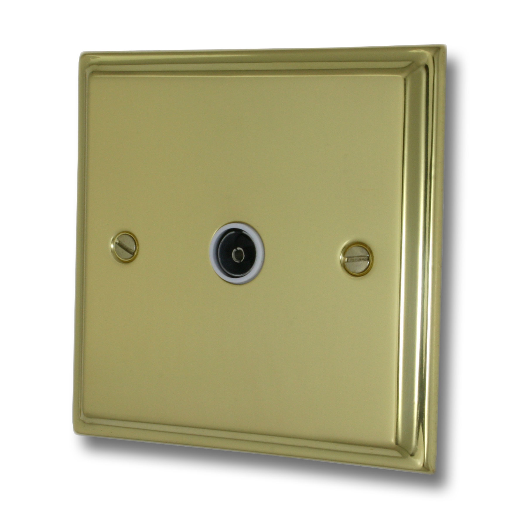 Deco Polished Brass Single TV Point (White Insert) - G+H DB35W