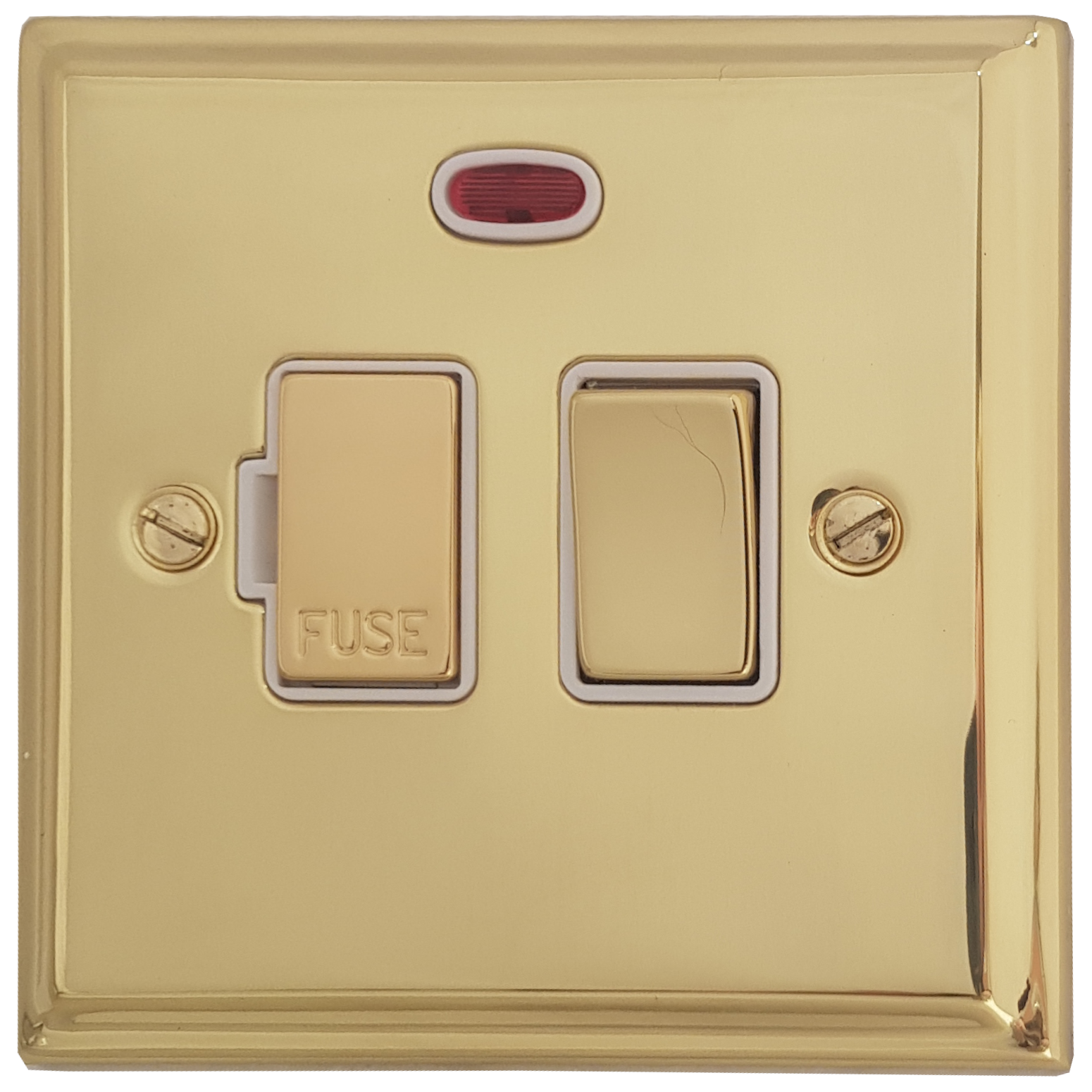 Deco Polished Brass Switch/White Inserted Fused Spur with Neon (Brass Switch/White Insert) - G+H DB227