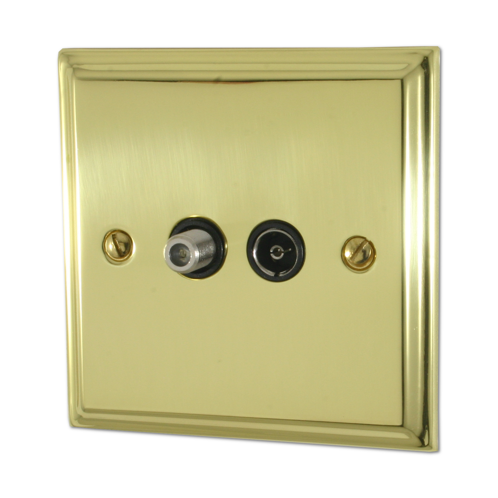 Deco Polished Brass TV/Satellite Socket (Black Insert) - G+H DB38B