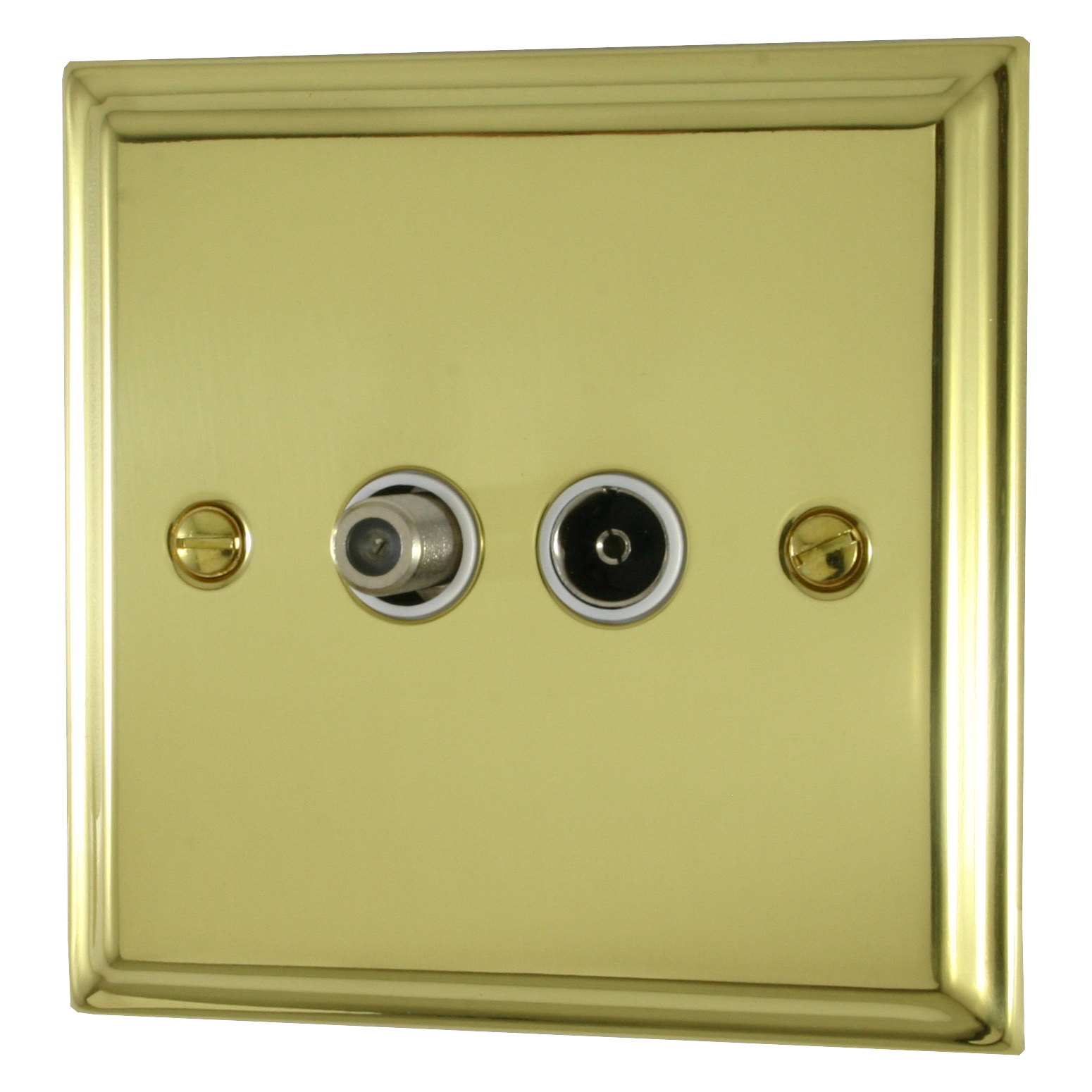 Deco Polished Brass TV/Satellite Socket (White Insert) - G+H DB38W