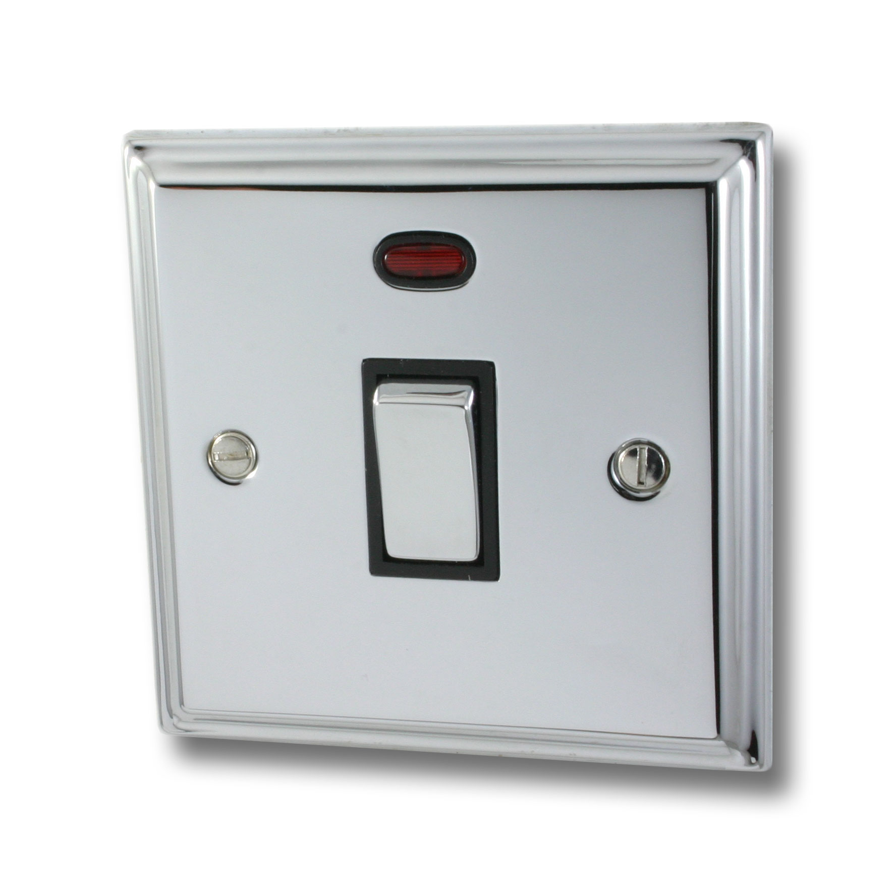 Deco Polished Chrome 20A DP Switch with Neon (Black Insert/Chrome Switch) - G+H DC326