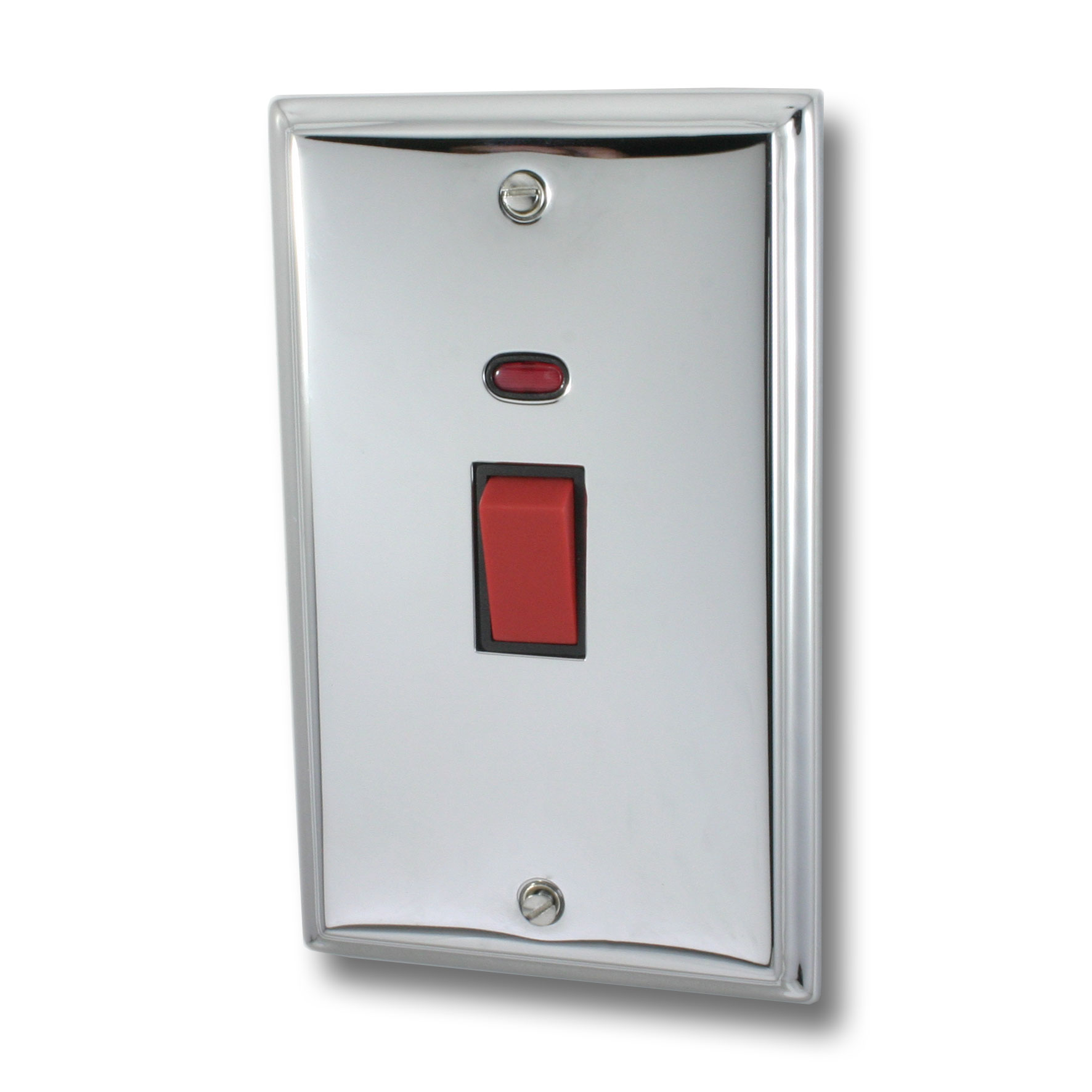Deco Polished Chrome 45A DP Switch with Neon (Black Insert/Vertical Plate) - G+H DC28B