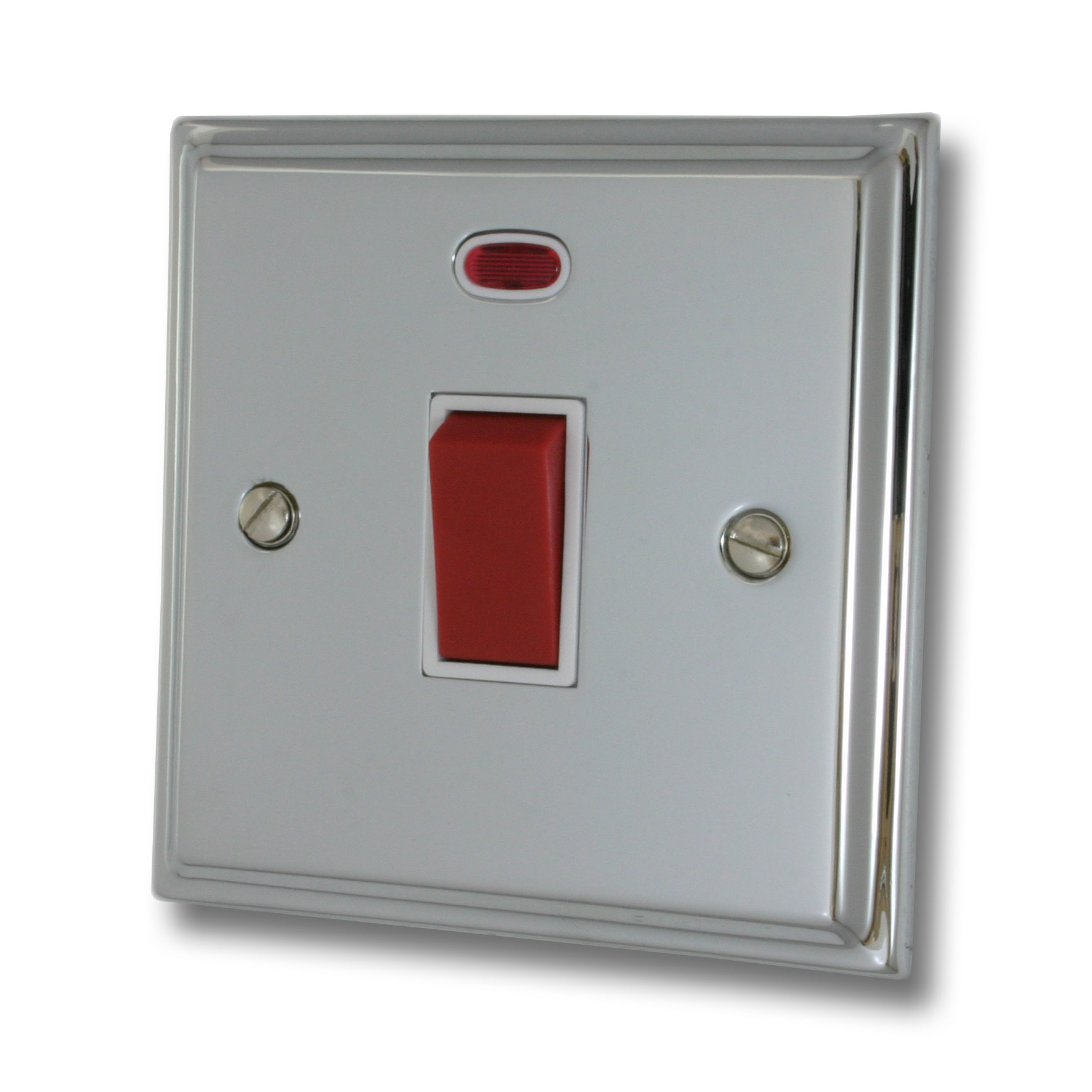 Deco Polished Chrome 45A DP Switch with Neon (White Insert/Red Switch) - G+H DC46W