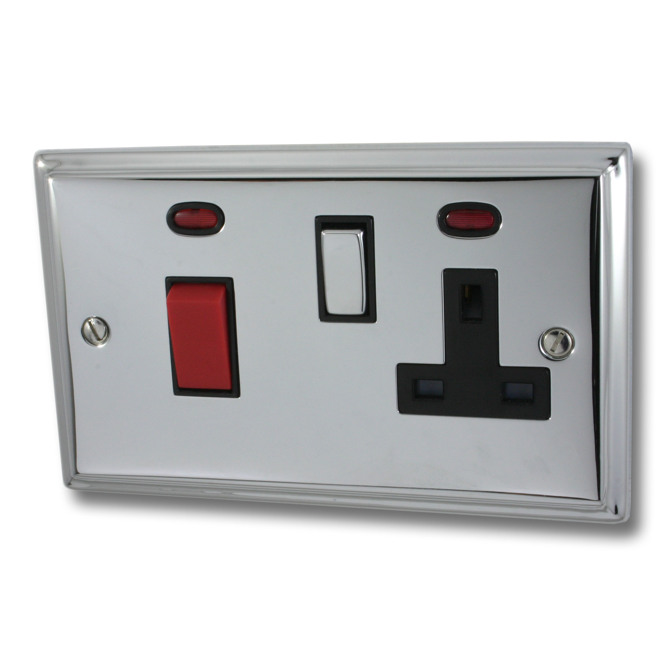 Deco Polished Chrome Cooker Switch with Socket (Black Insert/Chrome Switch) - G+H DC329