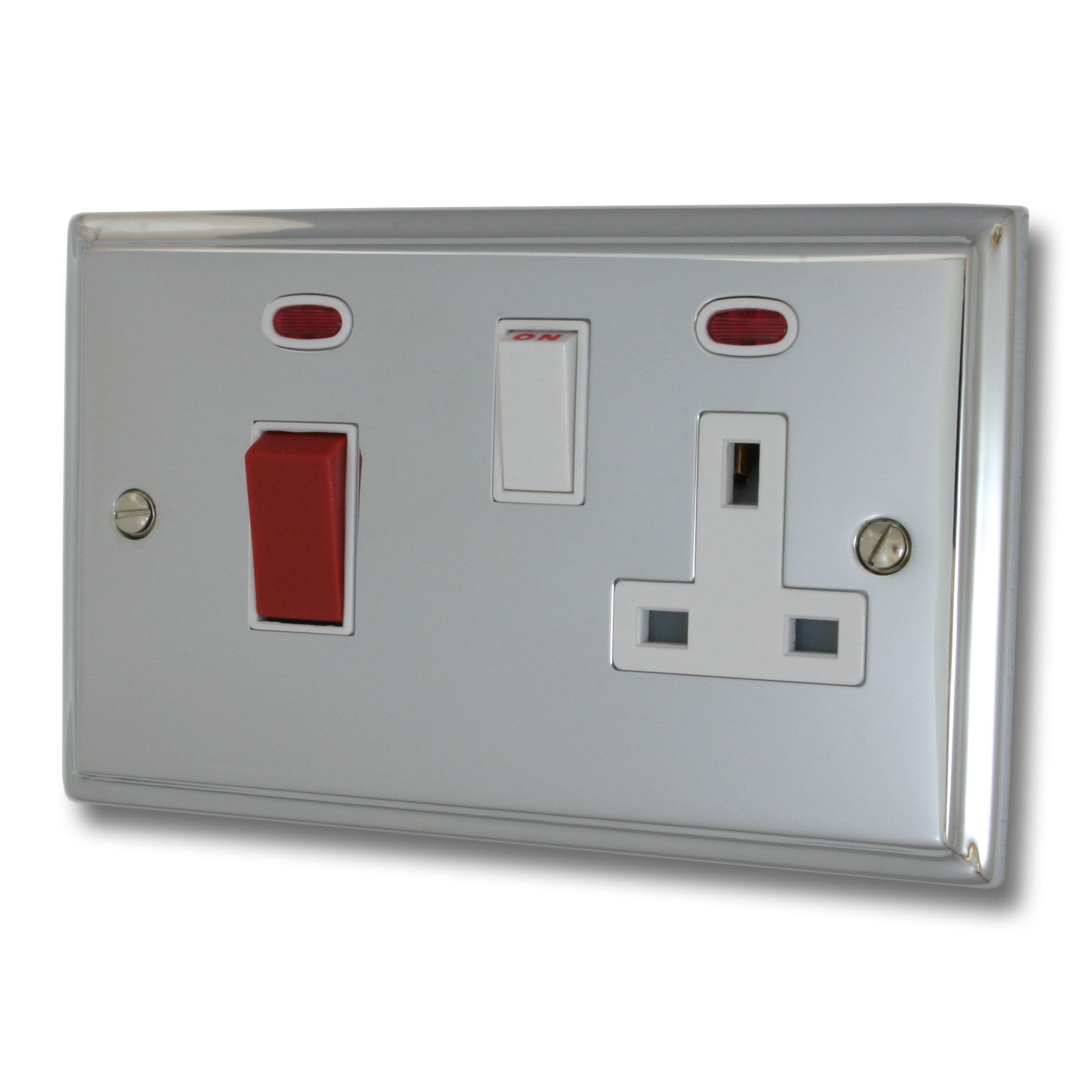 Deco Polished Chrome Cooker Switch with Socket (White Switch) - G+H DC29W