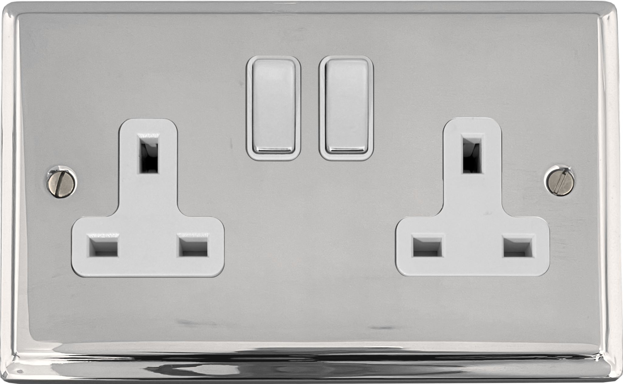 Deco Polished Chrome Double Socket (White Insert/Chrome Switches) - G+H DC210