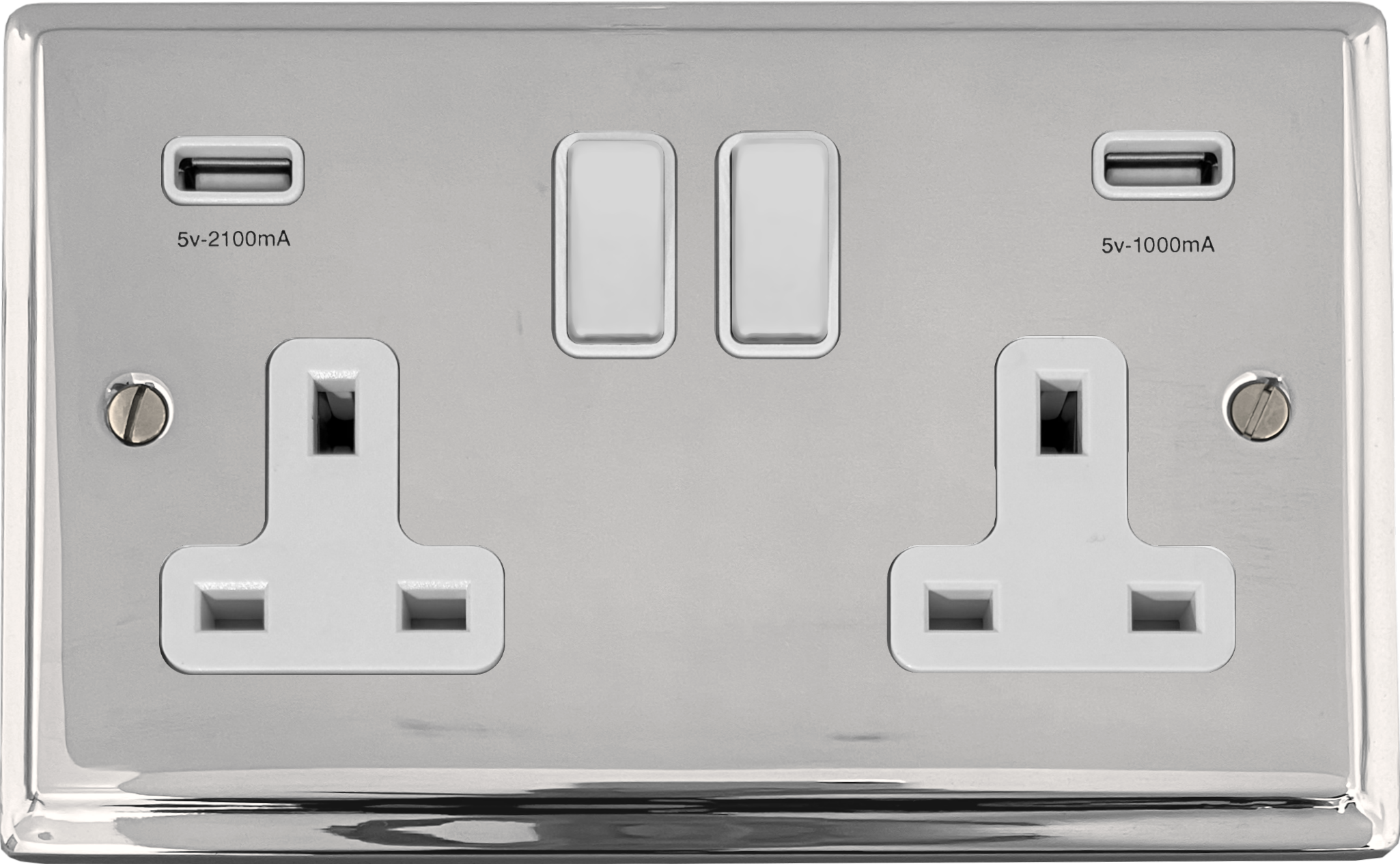 Deco Polished Chrome Double Socket with USB (White Switches) - G+H DC910W