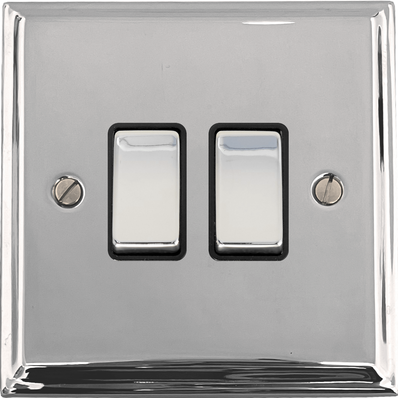 Deco Polished Chrome Light Switch (2 Gang/Black Insert/Chrome Switches) - G+H DC302