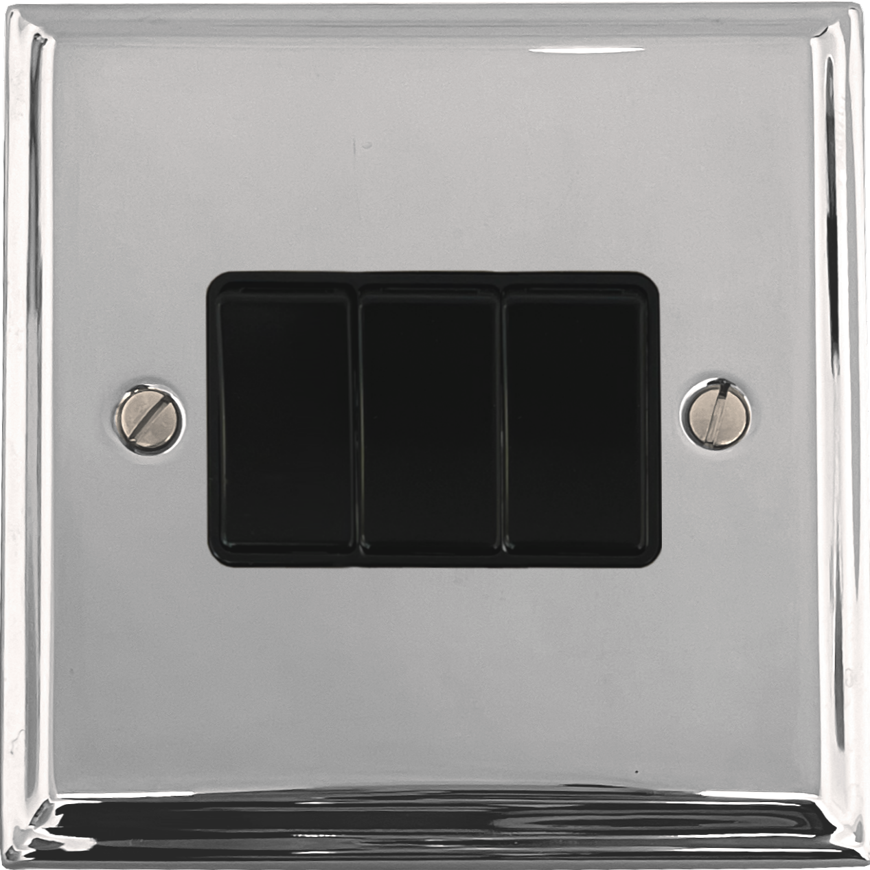 Deco Polished Chrome Light Switch (3 Gang/Black Switches) - G+H DC3B