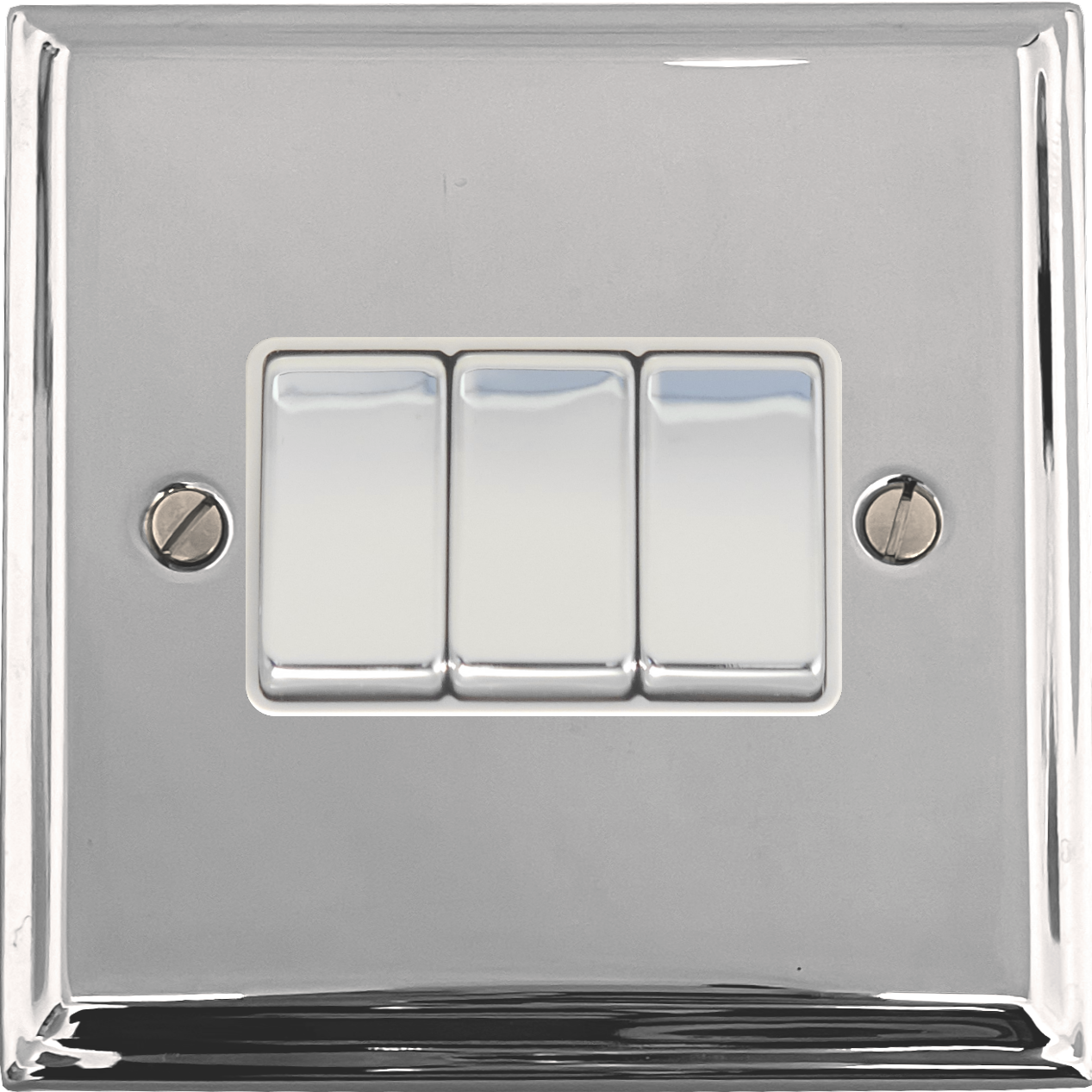 Deco Polished Chrome Light Switch (3 Gang/White Insert/Chrome Switches) - G+H DC203