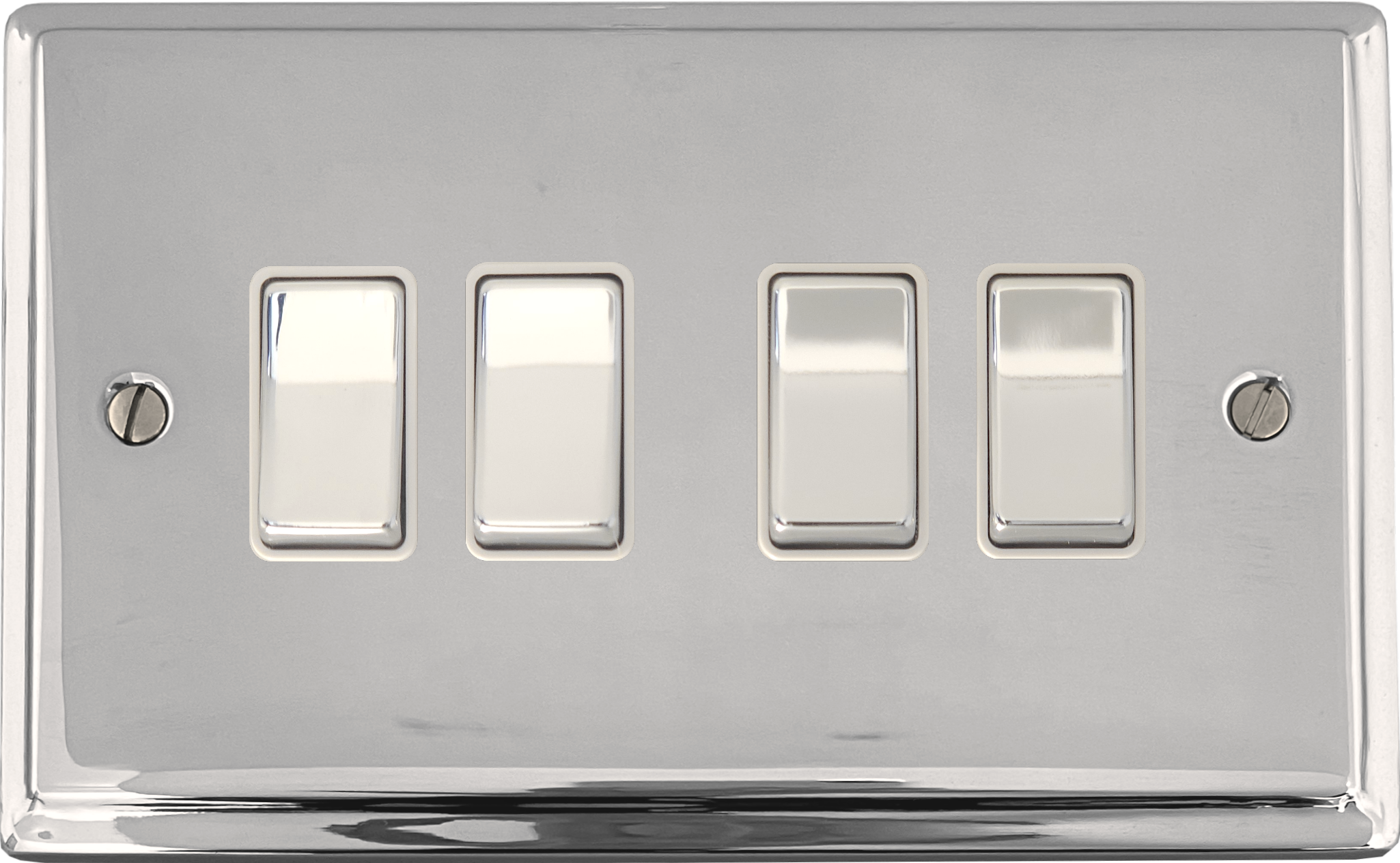 Deco Polished Chrome Light Switch (4 Gang/White Insert/Chrome Switches) - G+H DC204