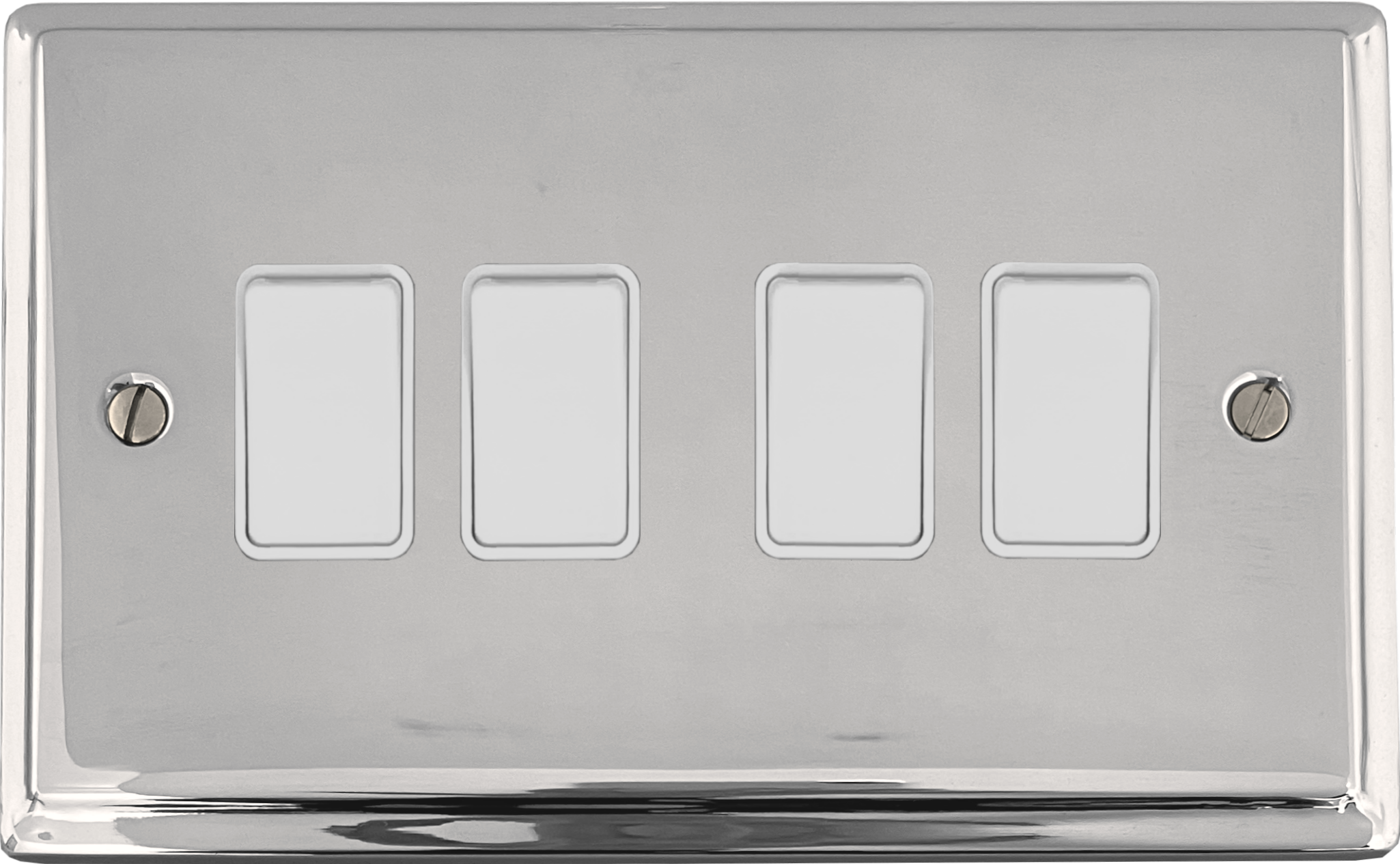 Deco Polished Chrome Light Switch (4 Gang/White Switches) - G+H DC4W