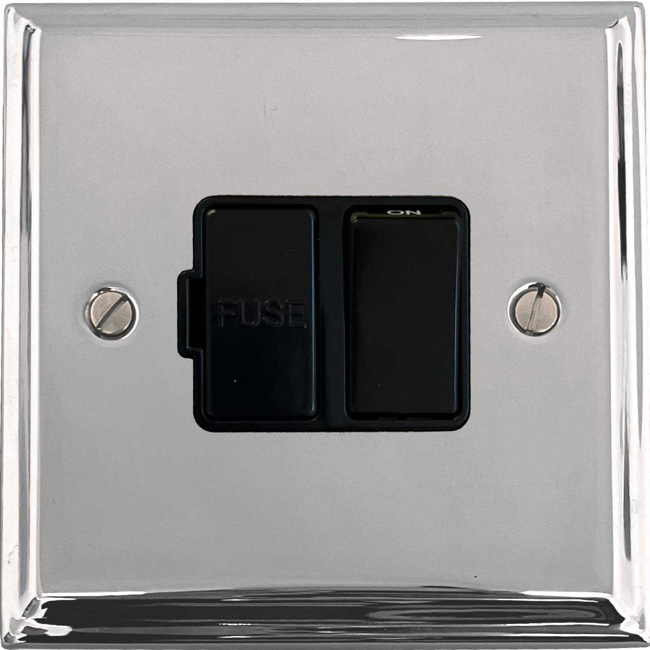Deco Polished Chrome Switched Fused Spur (Black Switch) - G+H DC57B