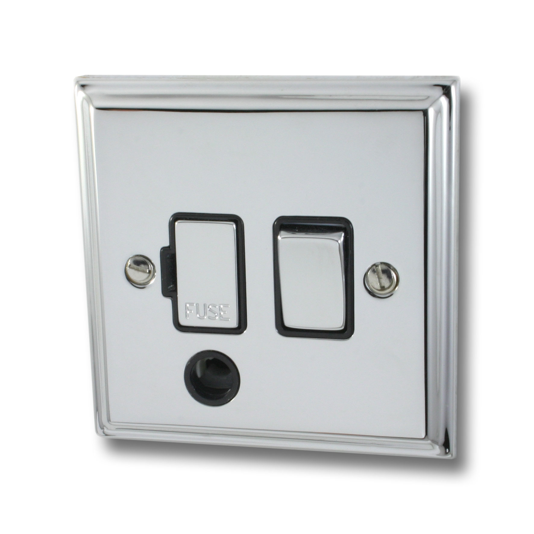 Deco Polished Chrome Switched Fused Spur with Flex Outlet (Black Insert/Chrome Switch) - G+H DC356