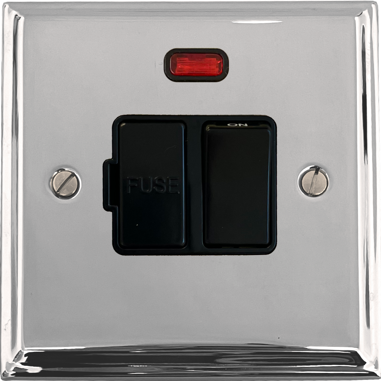 Deco Polished Chrome Switched Fused Spur with Neon (Black Switch) - G+H DC27B