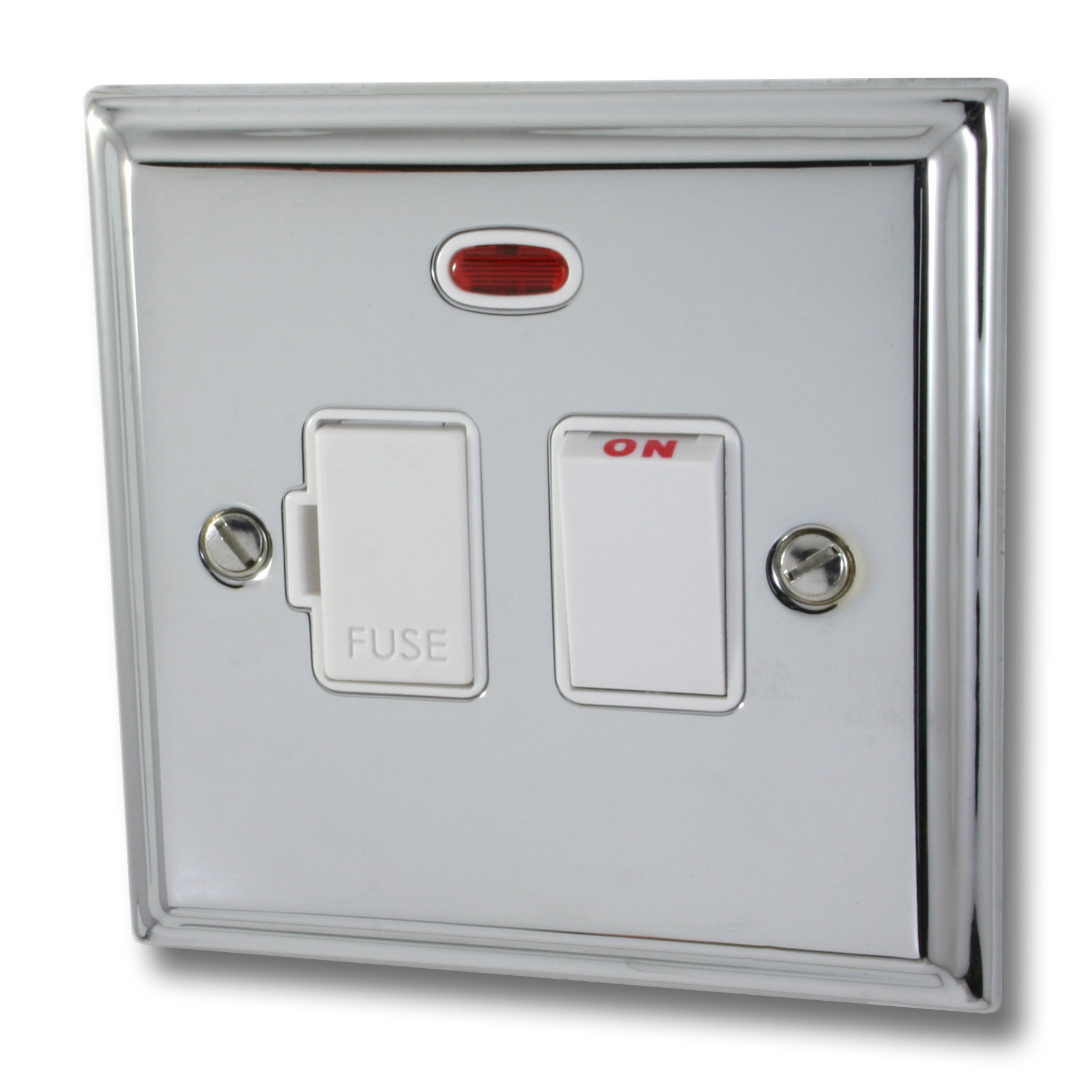 Deco Polished Chrome Switched Fused Spur with Neon (White Switch) - G+H DC27W