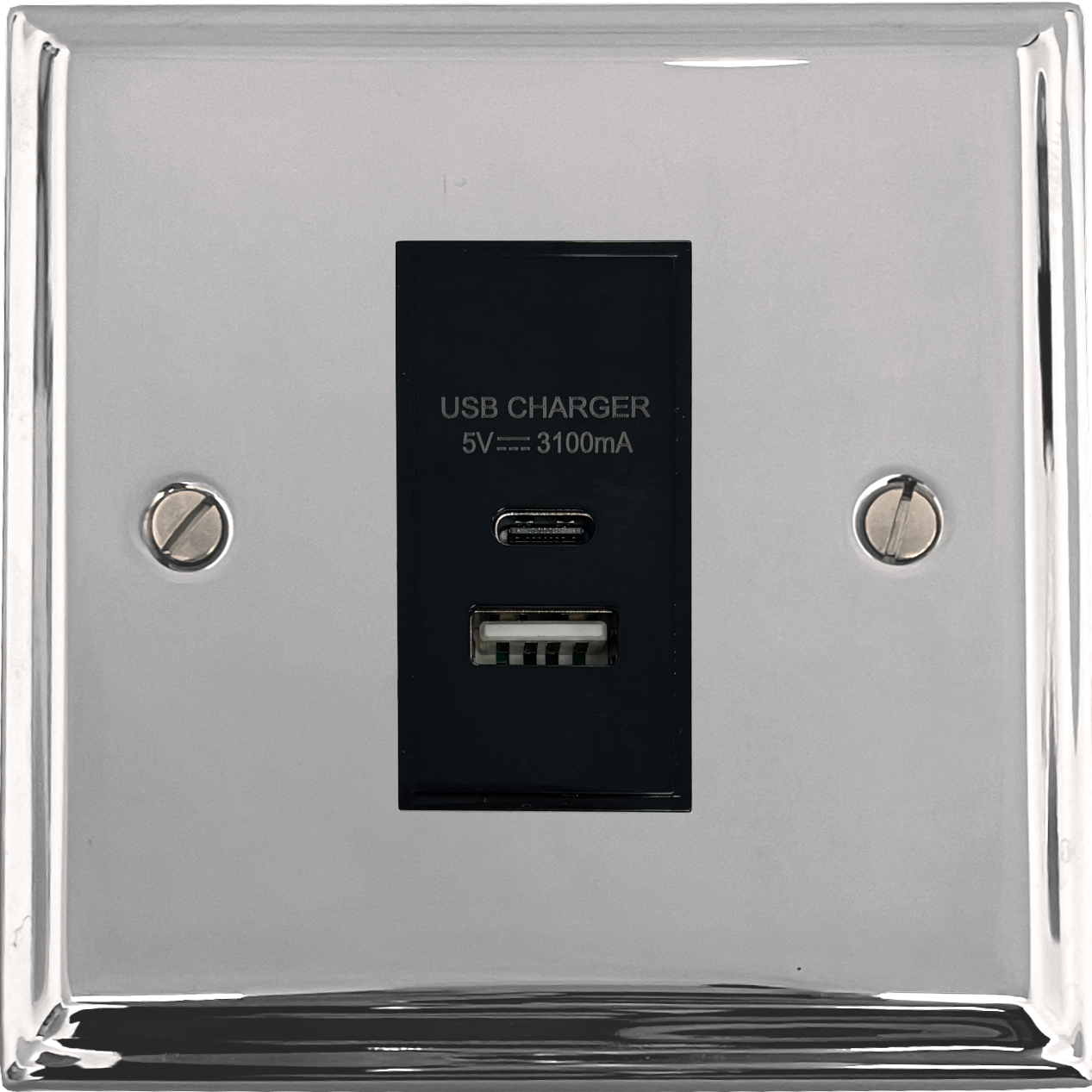 Deco Polished Chrome USB Charger (USB-A and USB-C) (1 Gang/Black Insert) - G+H DC41B