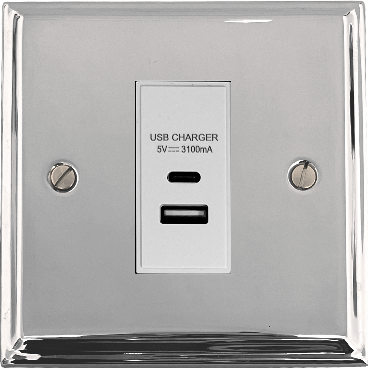 Deco Polished Chrome USB Charger (USB-A and USB-C) (1 Gang/White Insert) - G+H DC41W