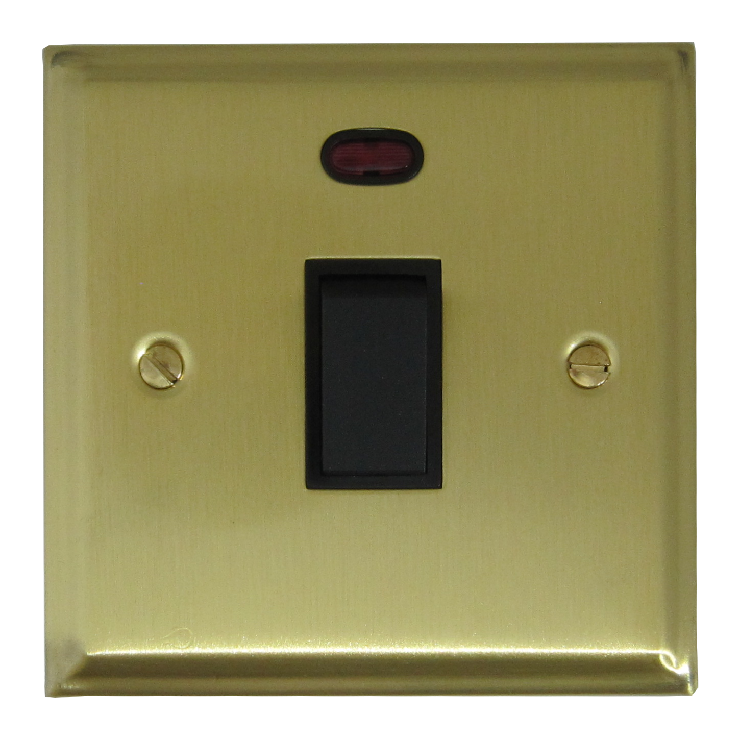 Deco Satin Brass 20A DP Switch with Neon (Black Switch) - G+H DSB26B