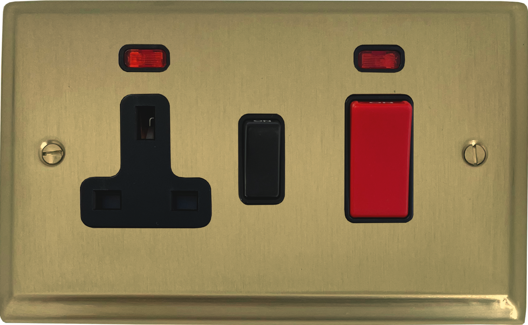 Deco Satin Brass Cooker Switch with Socket (Black Switch) - G+H DSB29B