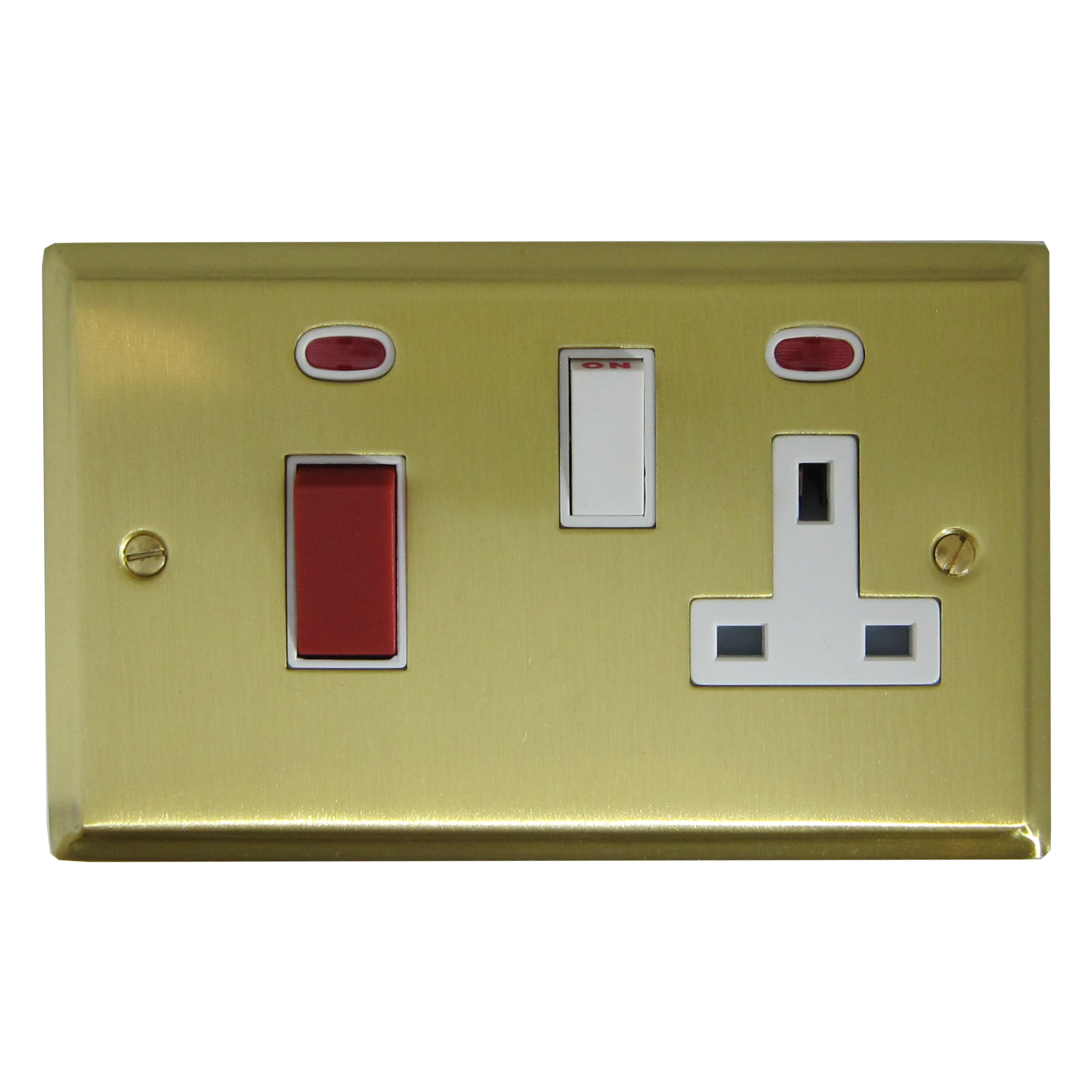 Deco Satin Brass Cooker Switch with Socket (White Switch) - G+H DSB29W