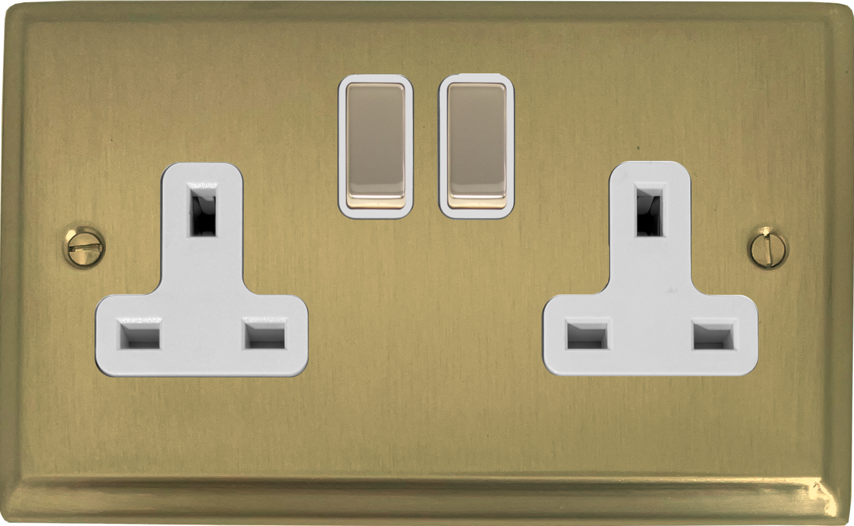 Deco Satin Brass Double Socket (Brass Switches/White Inserts) - G+H DSB210