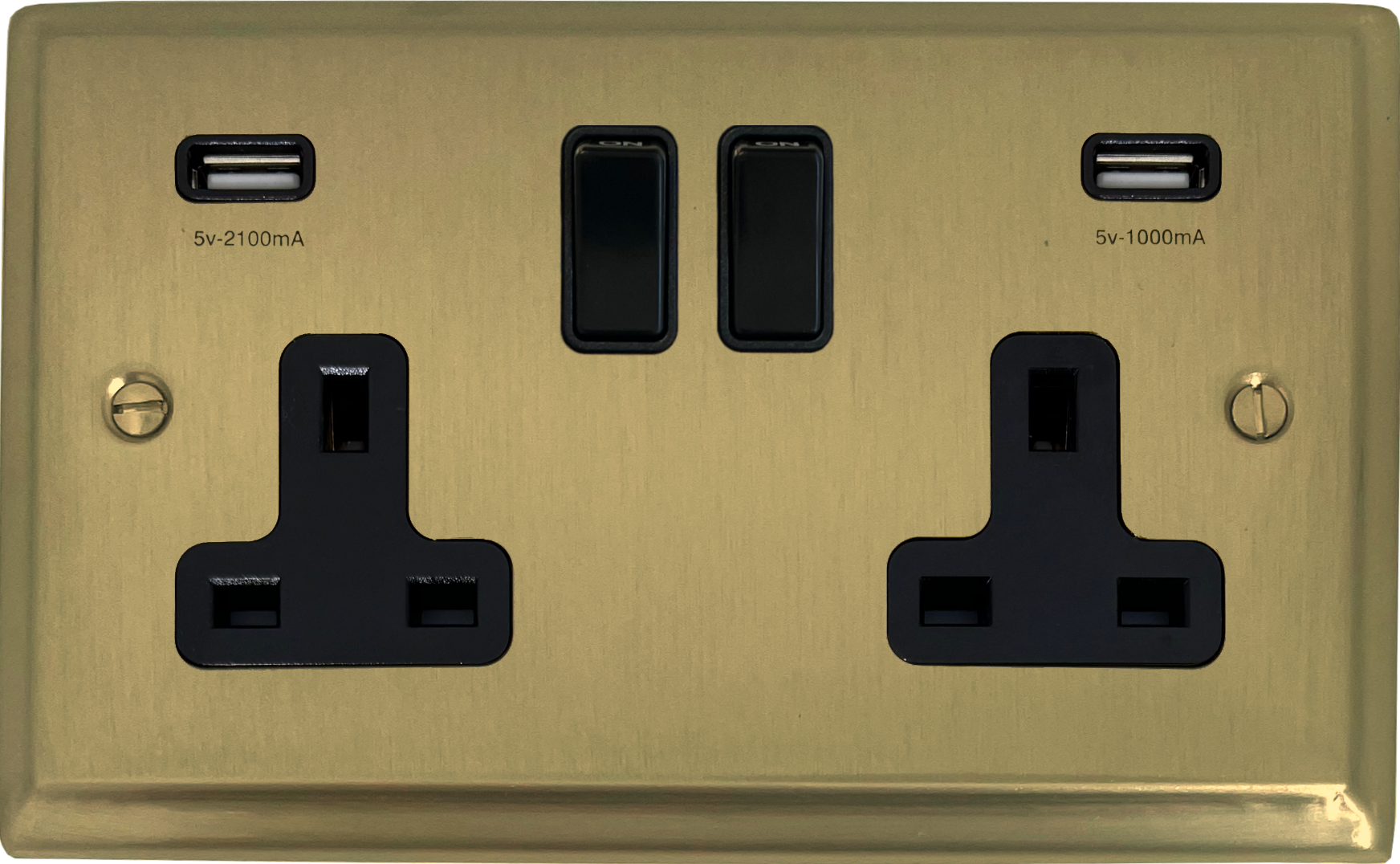 Deco Satin Brass Double Socket with USB (Black Switches) - G+H DSB910B