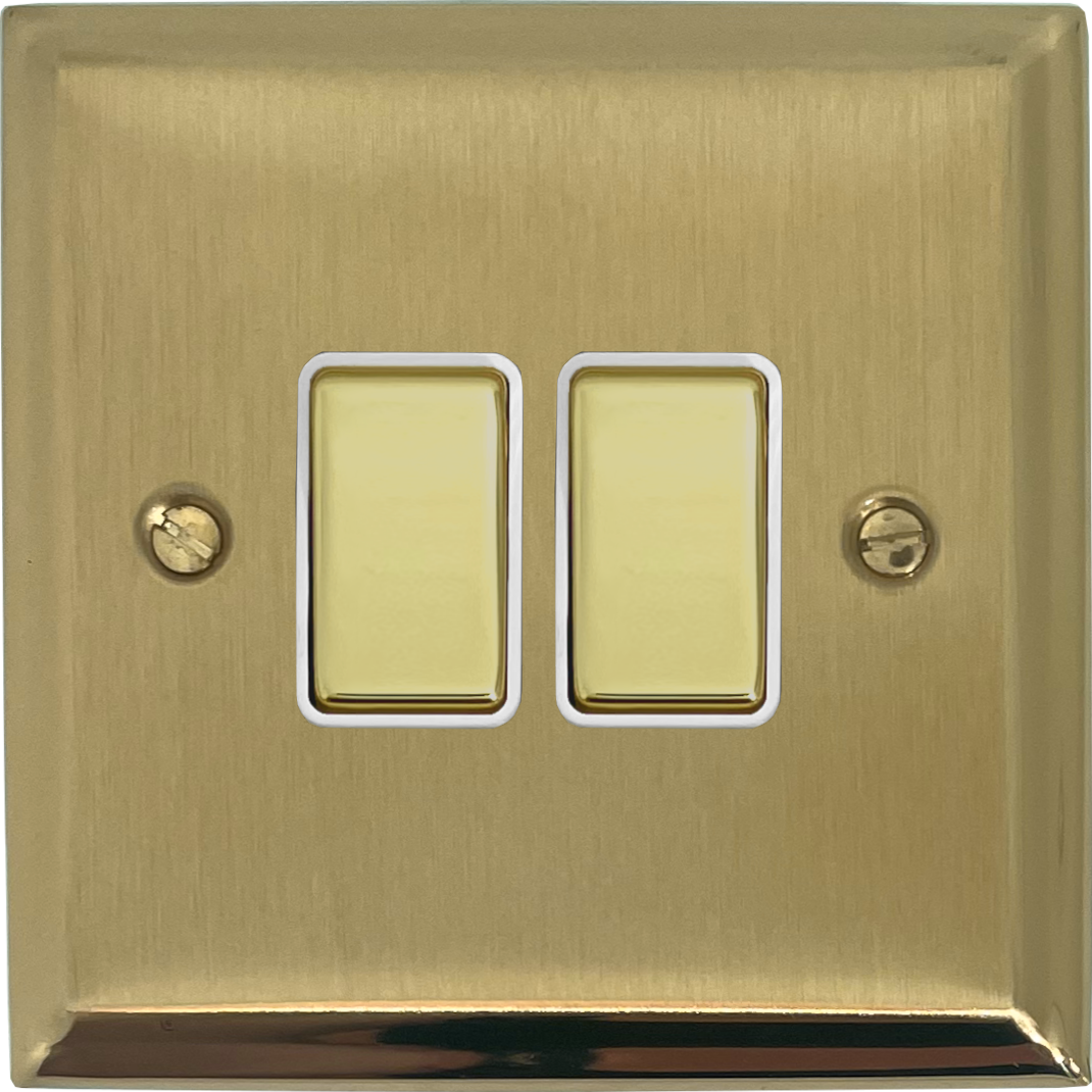 Deco Satin Brass Light Switch (2 Gang/Brass Switches/White Inserts) - G+H DSB202