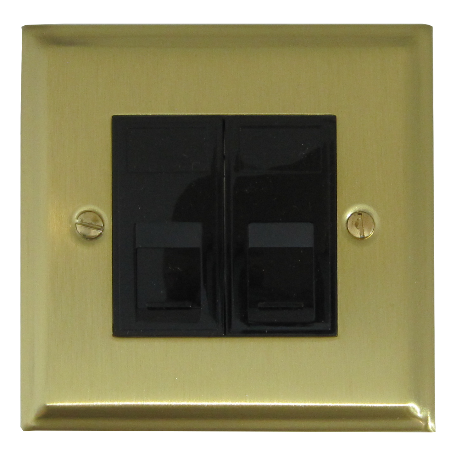Deco Satin Brass RJ45 Socket (2 Gang/Black Insert)