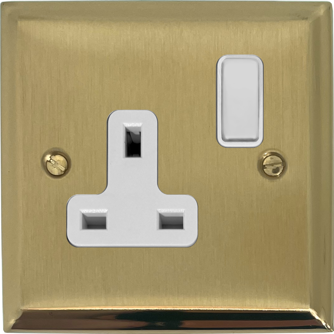Deco Satin Brass Single Socket (White Switch) - G+H DSB9W