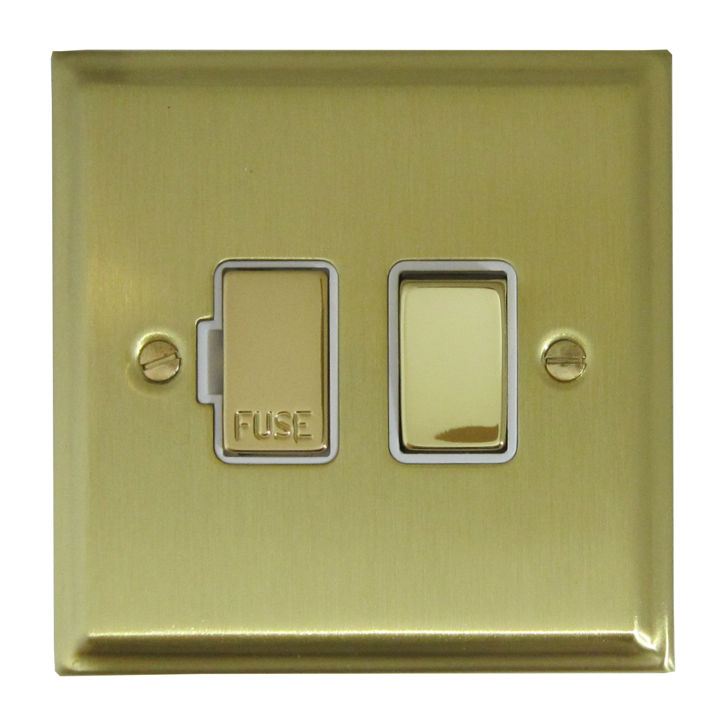 Deco Satin Brass Switched Fused Spur (Brass Switch/White Insert) - G+H DSB257