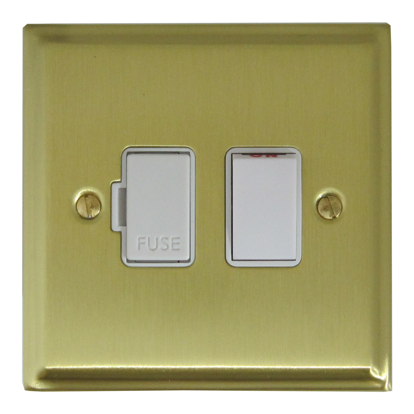 Deco Satin Brass Switched Fused Spur (White Switch) - G+H DSB57W