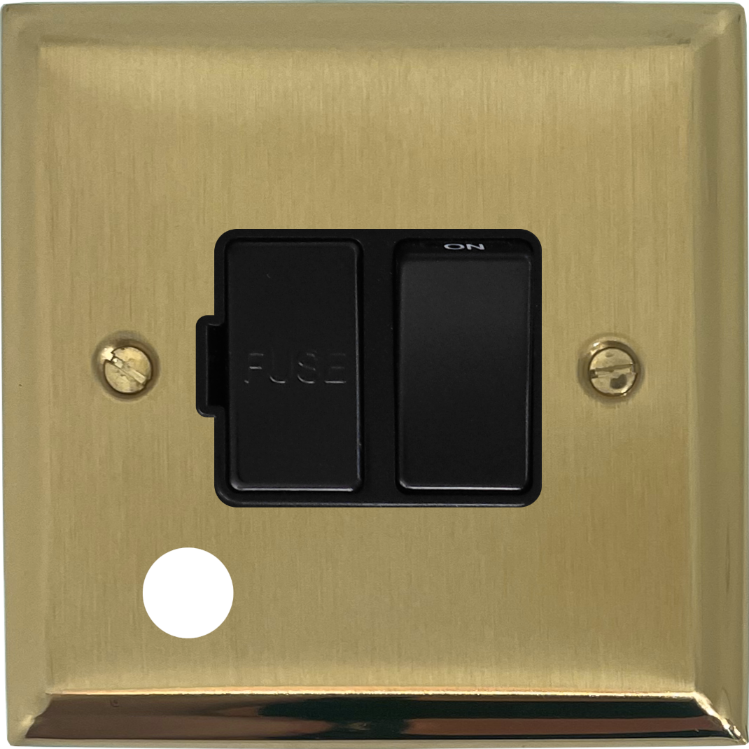 Deco Satin Brass Switched Fused Spur with Flex Outlet (Black Switch) - G+H DSB56B