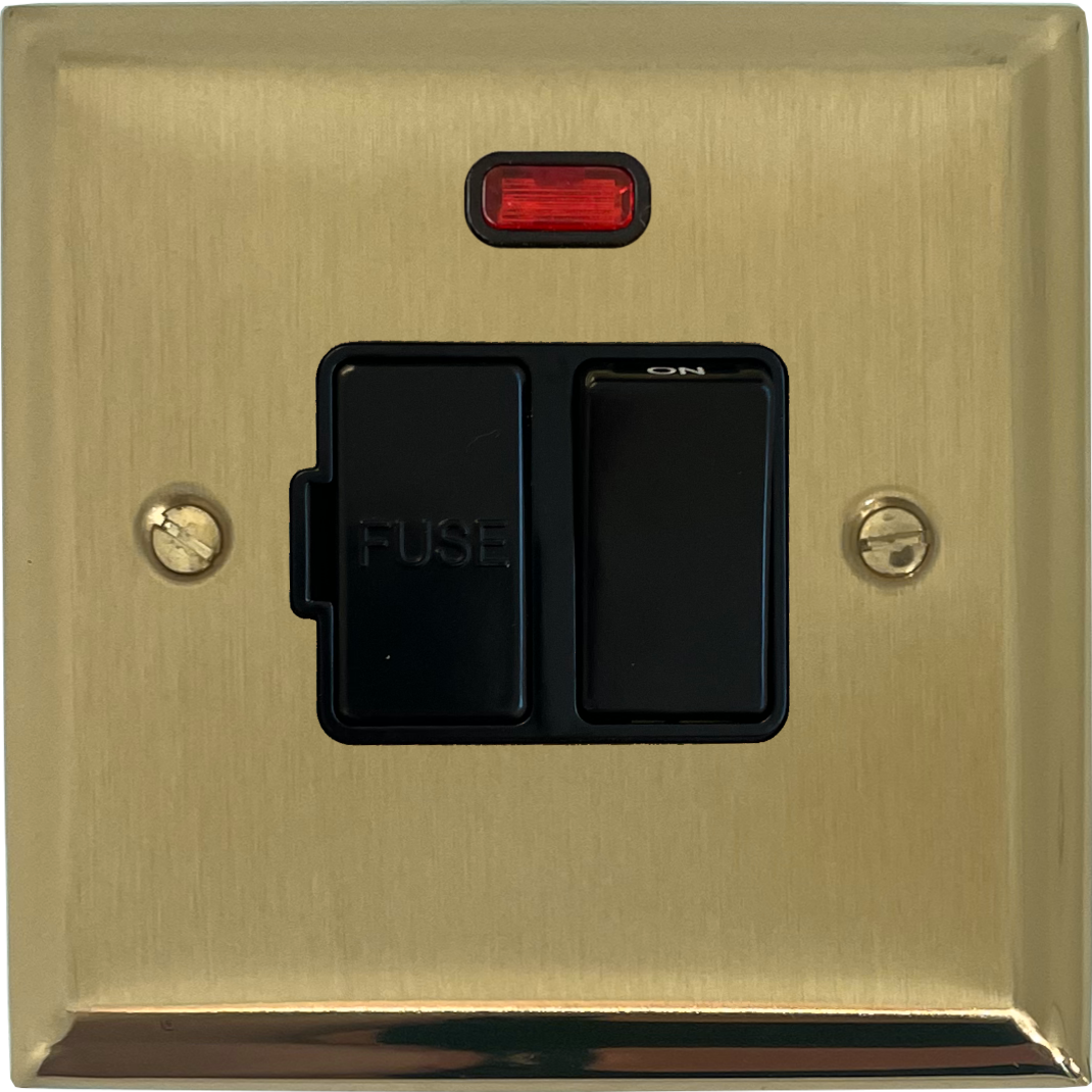 Deco Satin Brass Switched Fused Spur with Neon (Black Switch) - G+H DSB27B